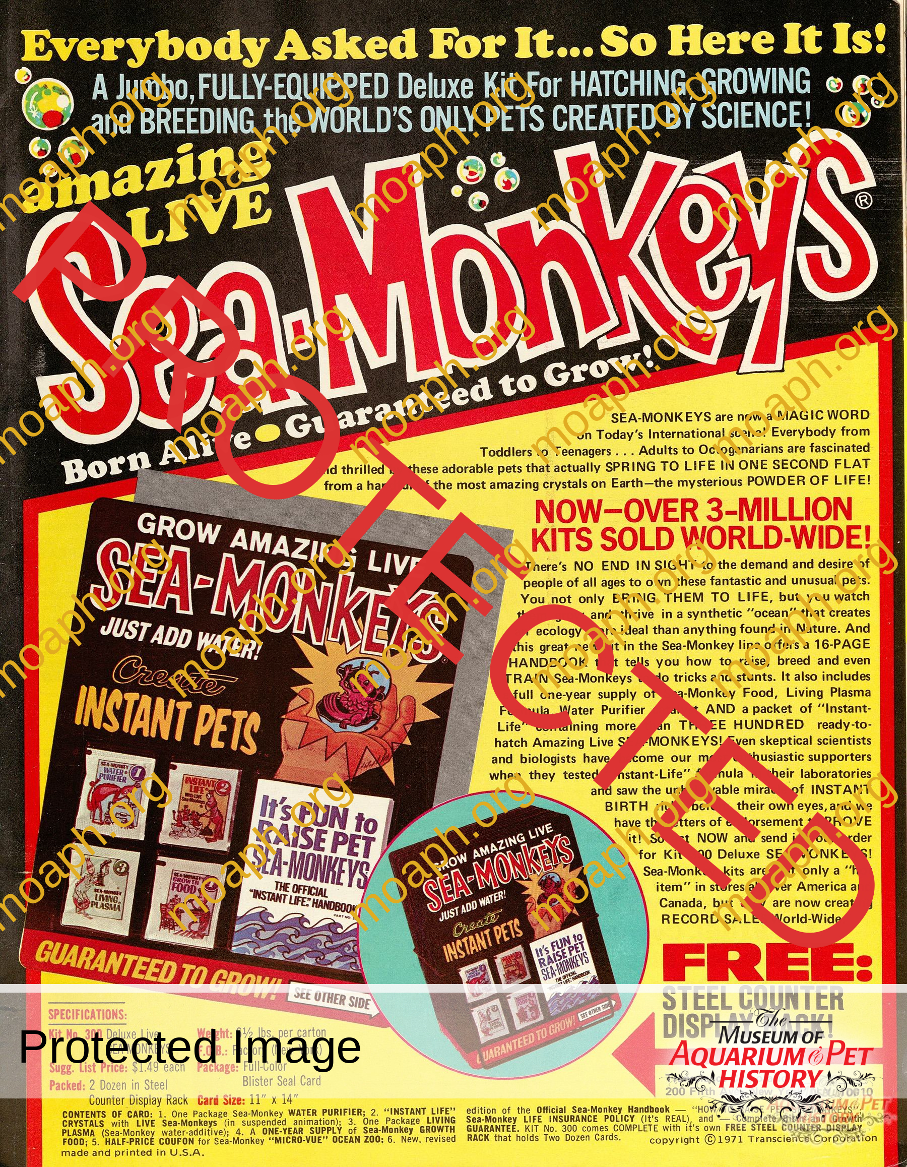 Back to Gallery 1972 Sea Monkey AdJun 6, 2025 A silly “pet” which in reality was just brine shrimp. Hard to believe they sold “over 3 million worldwide”! From the May 1972 edition of Pet Age.