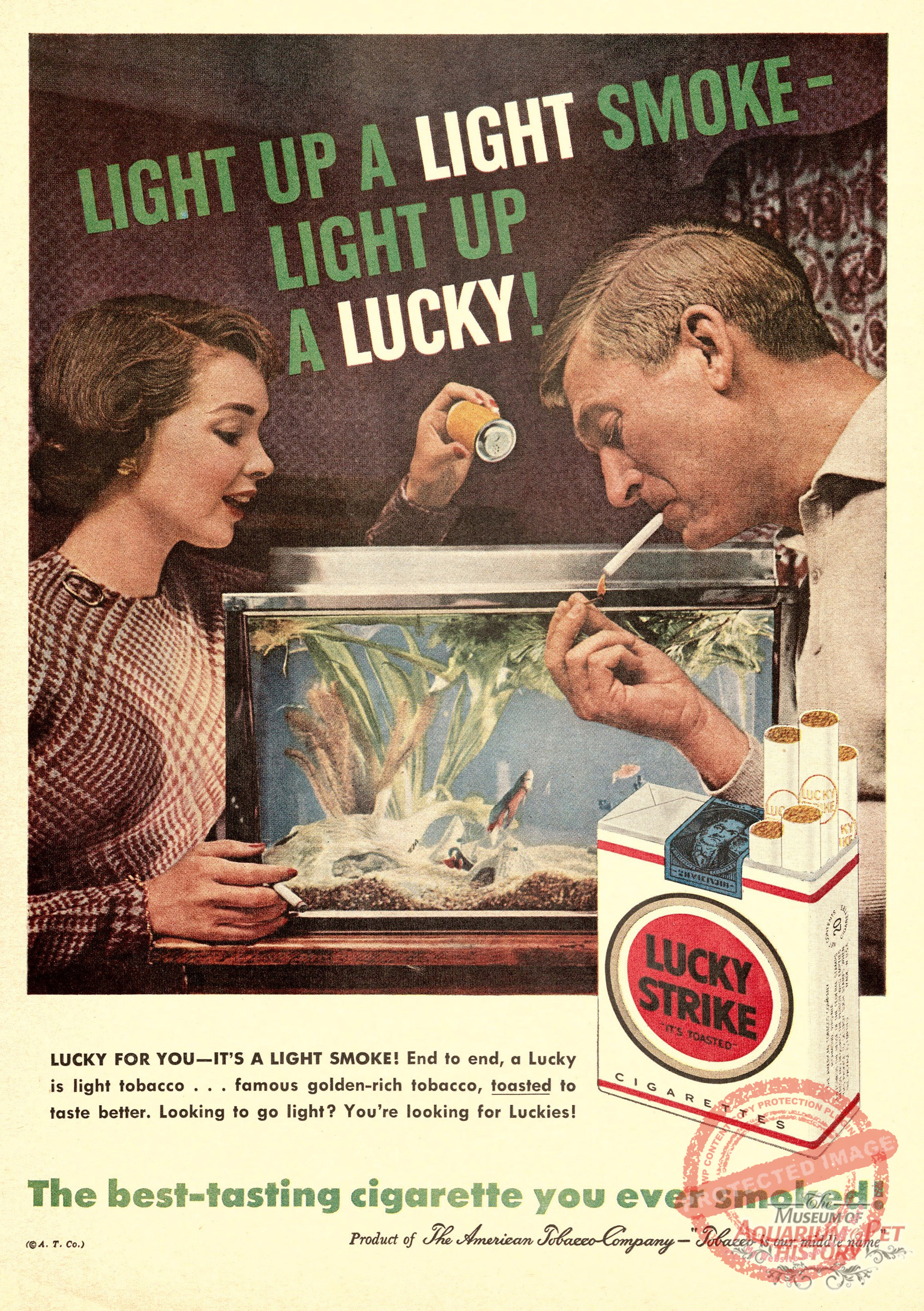 Ah, what’s better than a Lucky Strike AND a fish tank! Ad from 1958.