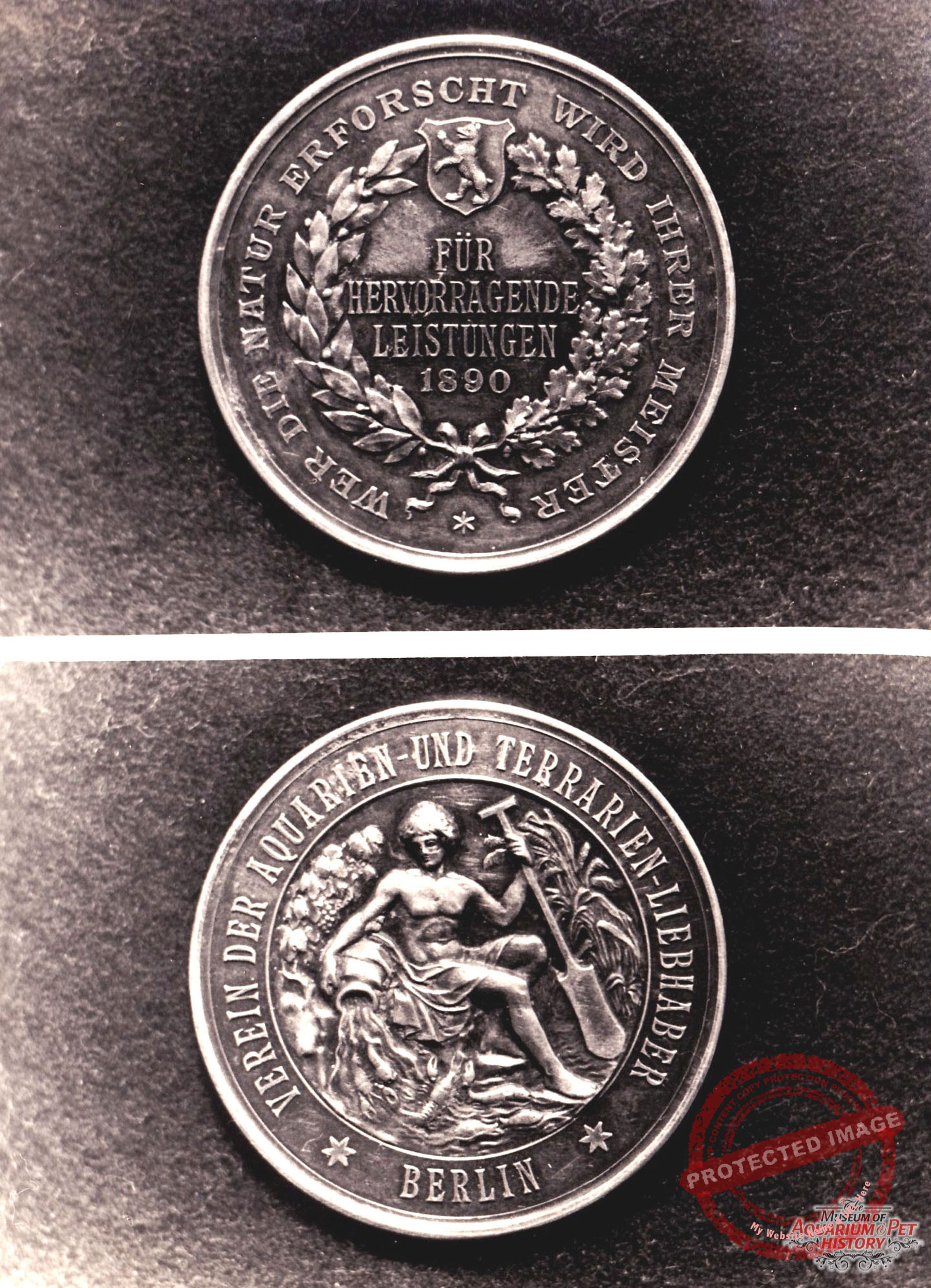 Medal awarded for the most beautifully planted aquaria of the Gotha society members at the first aquarium exhibition of Berlin’s Triton society in 1888.