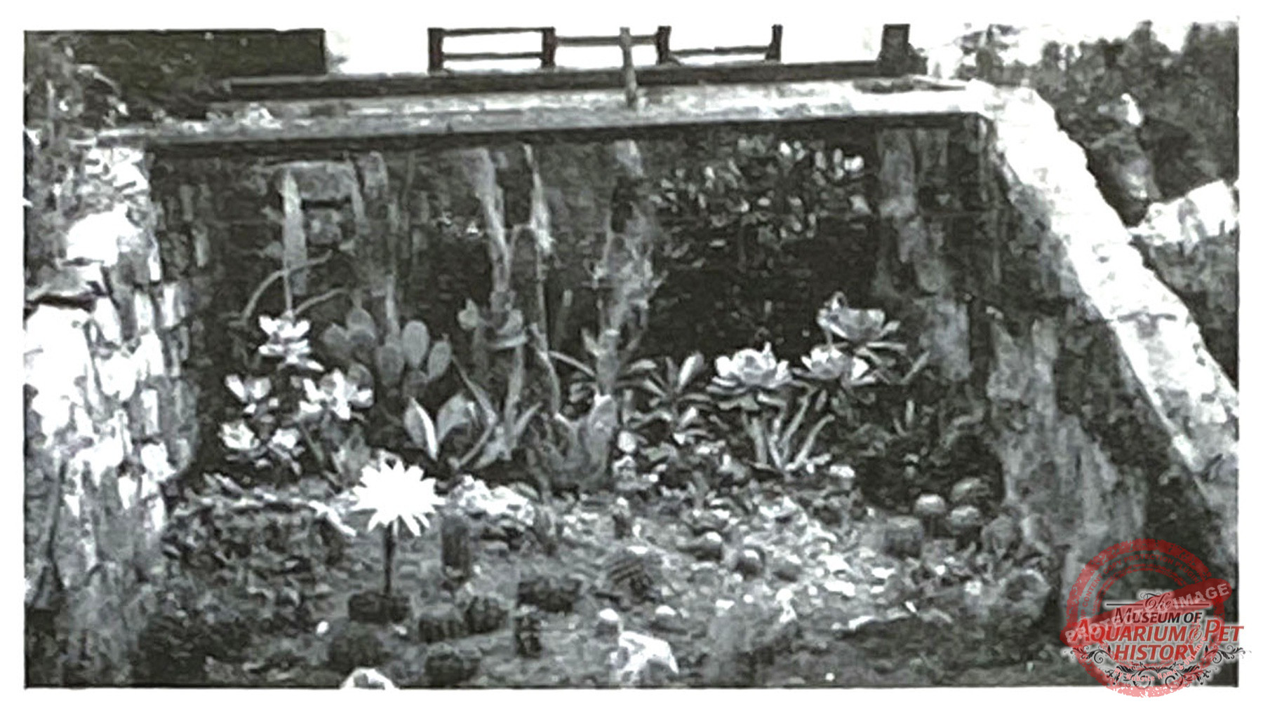 The members of the Aquarium society were diligent architects of water gardens, working with their own hands to create ever new features in their aquarium park.