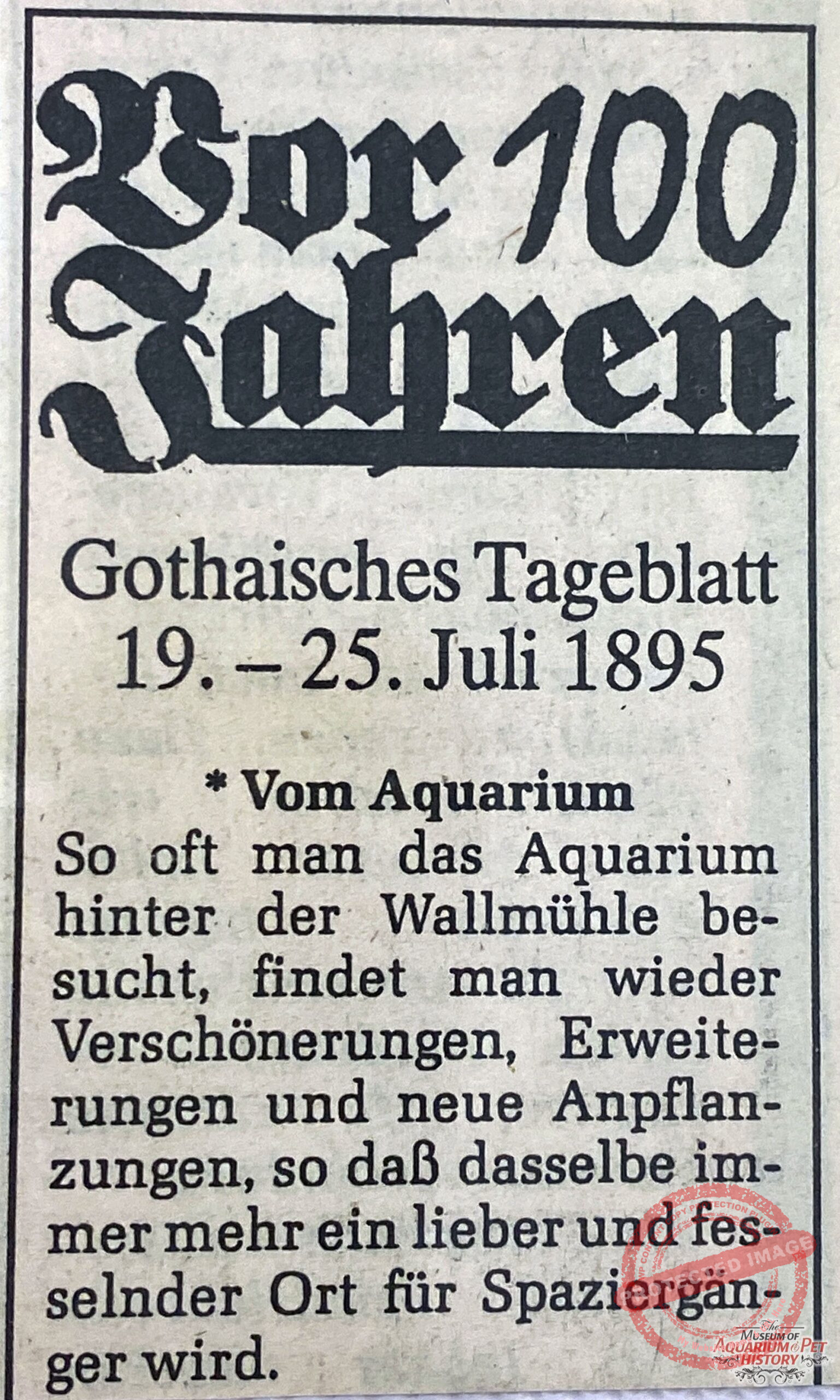 Again and again, later publications in the Gotha press carried reminiscences of the founding era of the Aquarium.