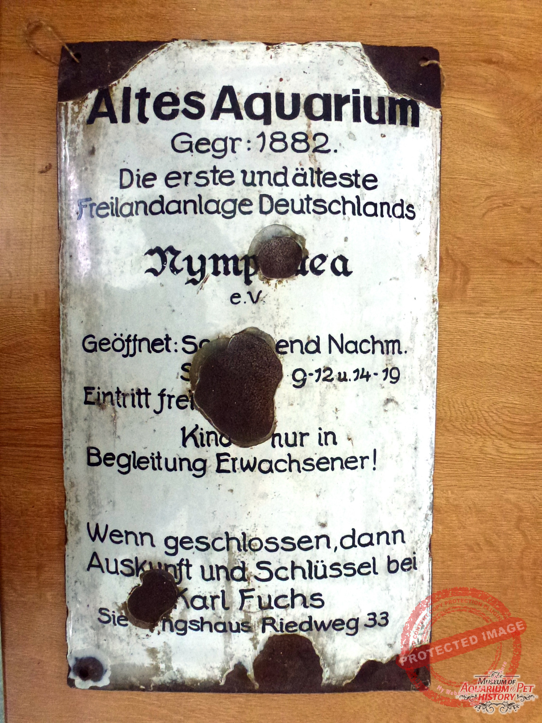 This old enamel sign dates from the period when my great-uncle Charlie Fuchs was in charge of the Aquarium.