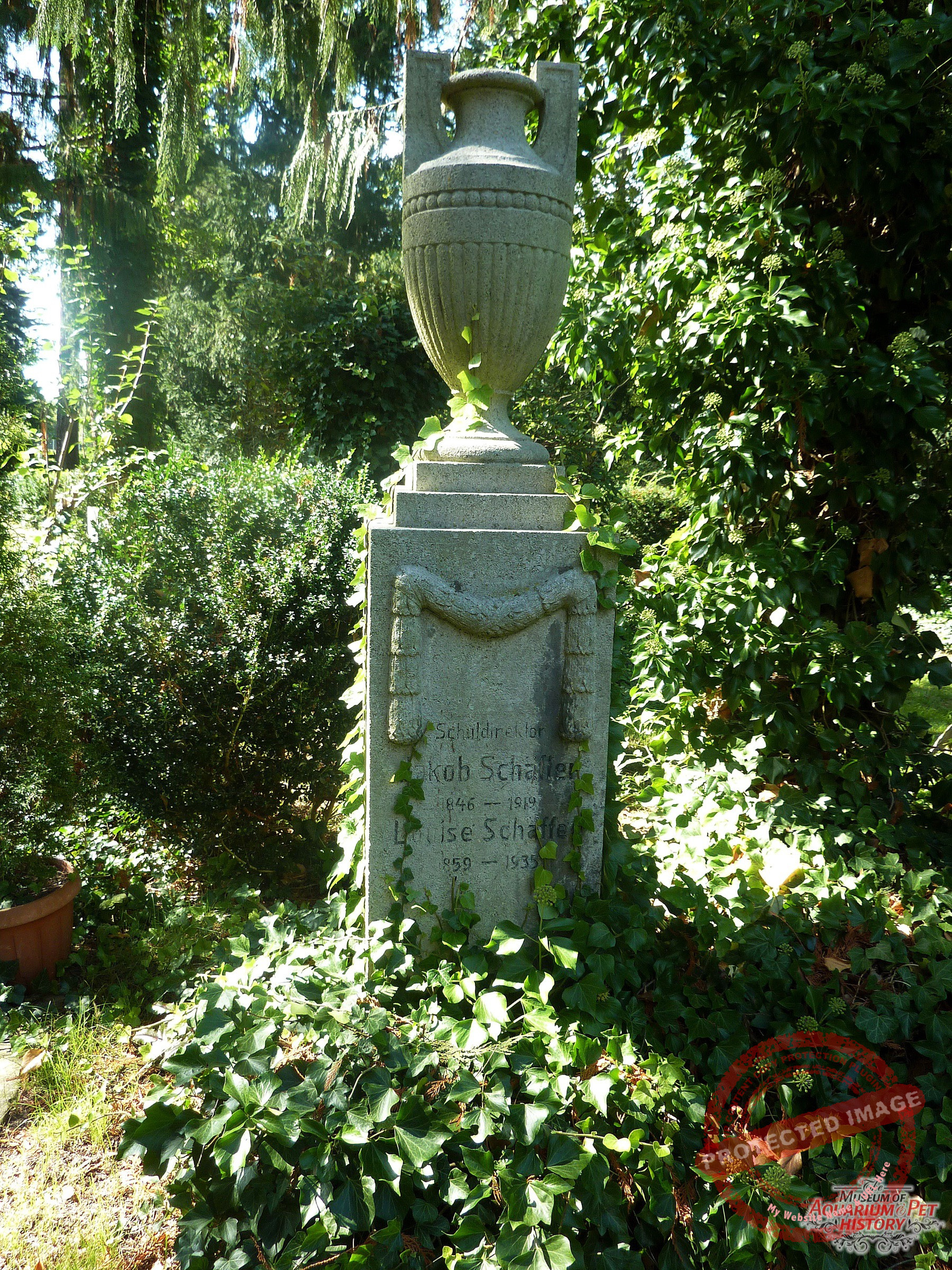 Grave of Jacob Schäffer and his wife in the Gotha cemetery, which gained renown in 1878 when Germany’s first crematorium was erected there. Many prominent figures chose cremation in Gotha over burial, among them Bertha von Suttner, the famed women’s rights activist and beloved of Alfred Nobel. Later, the cemetery played another special role, for its director Gustav Herbig became, during the GDR era, the long-standing chairman of the Gotha Aquarium Society.