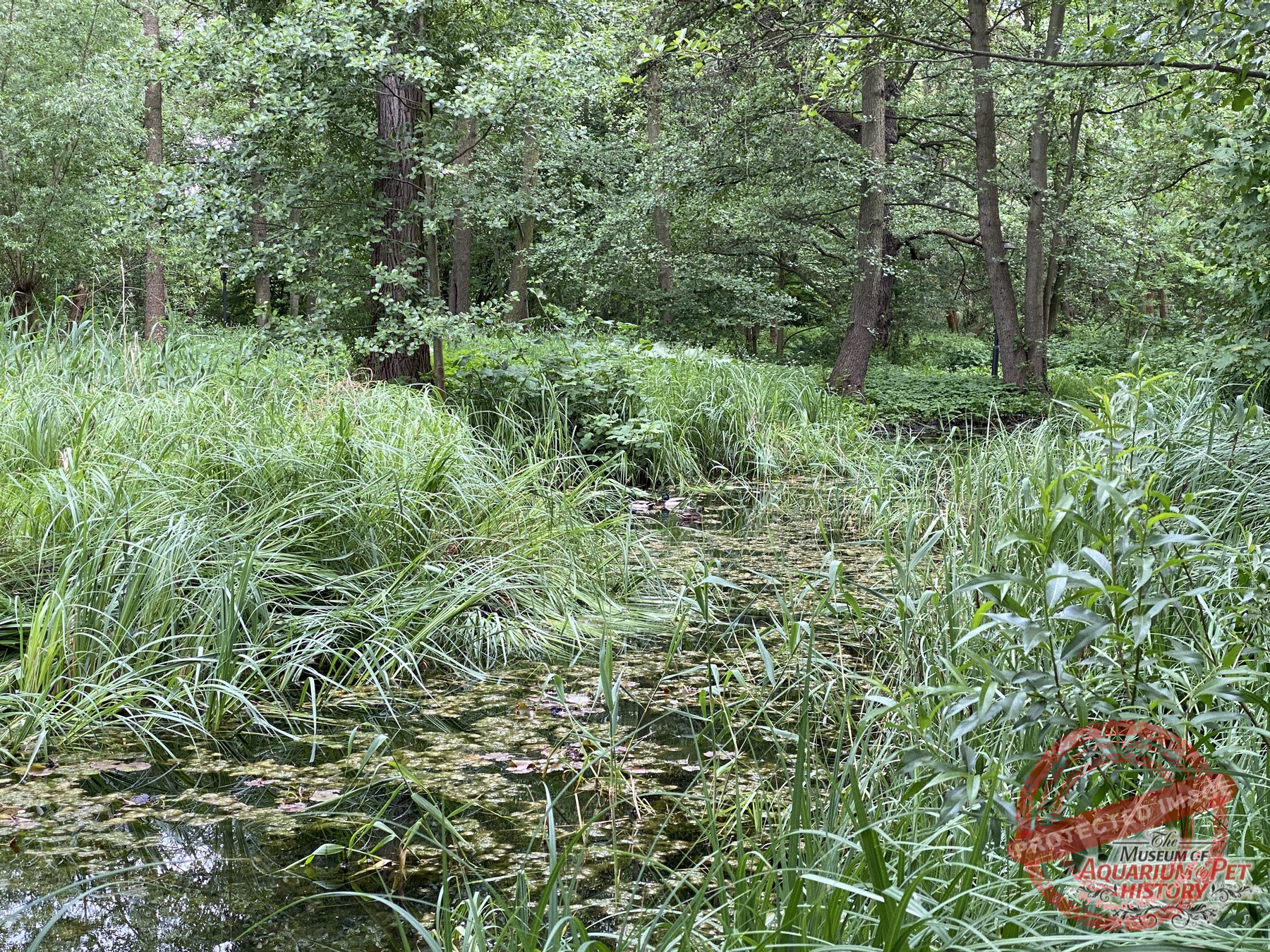 So it was for several aquarists from Gotha, who would meet at a particularly bountiful pond teeming with luxuriant aquatic plants: the Röhrenteich, in the Uelleber Ried. This pond, fed on its southern side by several small, relatively warm springs, was not overly large, yet clear and soft in its waters. Because of the constant inflow of temperate water, it never froze in winter; in a sense, it was a natural precursor to the heated pond—or aquarium. Its name, Röhrenteich (“Pipe Pond”), harked back to the days before iron pipes were common, when hollowed wooden logs were used for wells and boreholes. A long-extinct trade was that of the “pipe-borer,” who drilled through larch trunks, thought to be especially suitable. To keep the logs from drying out and splitting, they were stored in soft water, which swelled the wood and made it more durable. The warm spring-fed pond was ideal for this, hence its name.