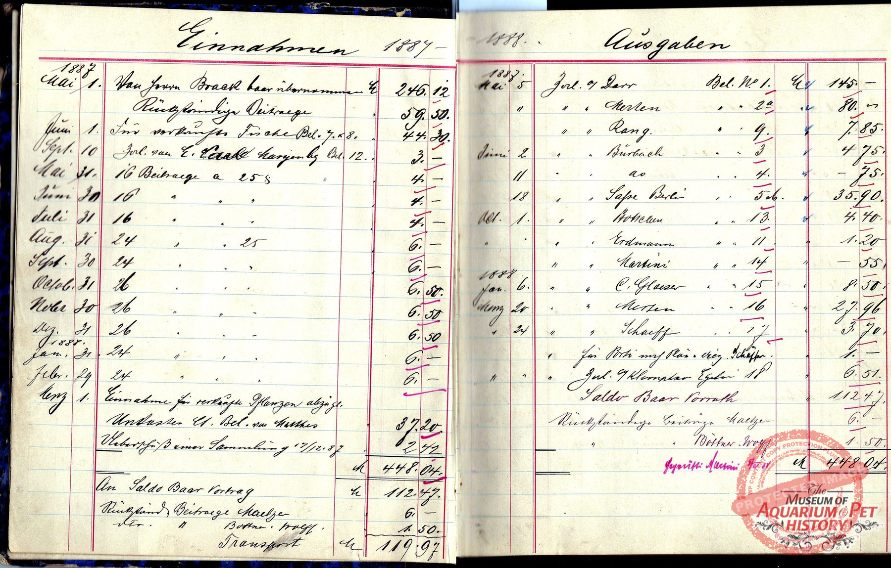 Only a few documents from the society’s early years have survived—here, a page from the account book of 1887/88.