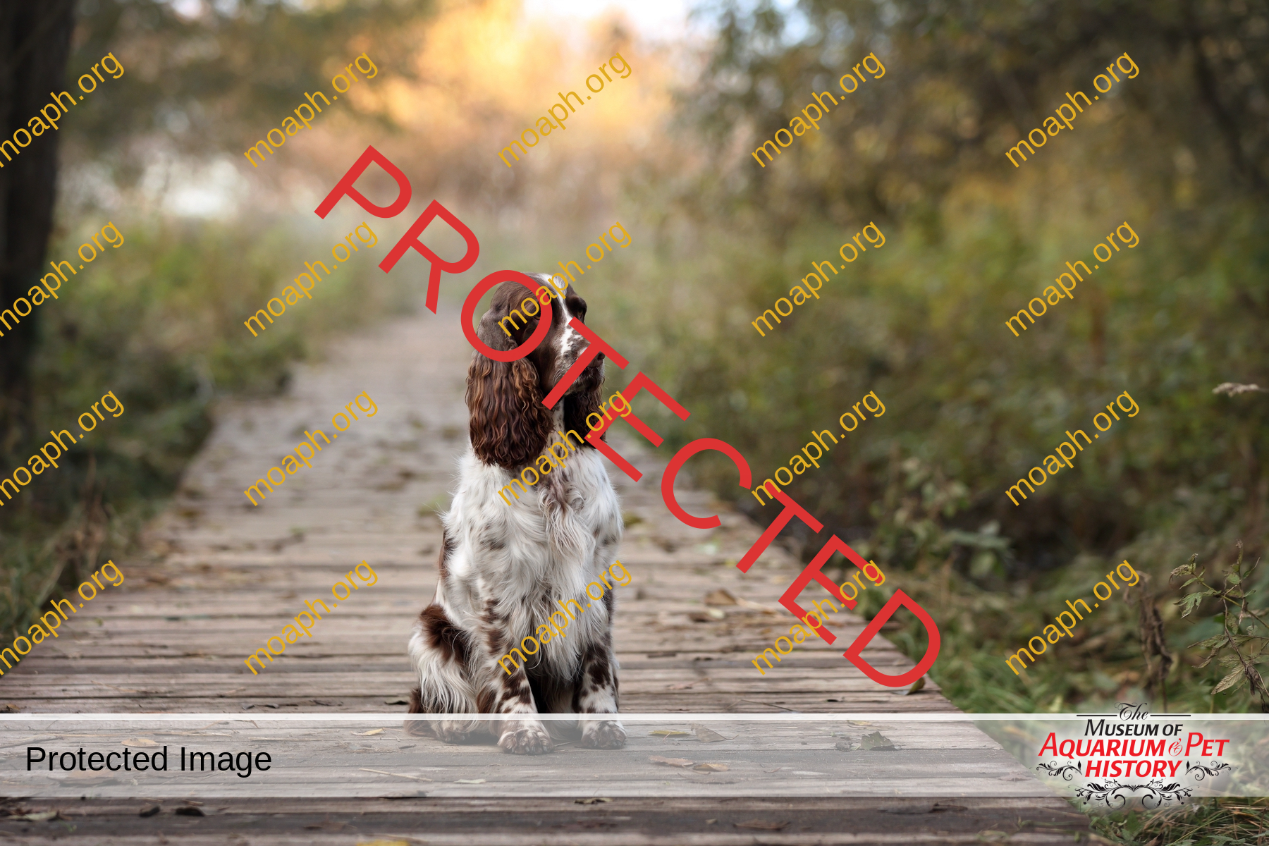 Created in England for flushing game, the English springer spaniel was bred from the now extinct Shropshire and Norfolk spaniels. The description of “springer” refers to the way in which it works, flushing or “springing” game birds from cover, causing them to take flight. Springers are closely related to the early English cocker spaniels. Both types could be born in the same litter in the early days of their development, and then over time, the smaller cocker spaniels were evolved into a separate breed. Today, English springer spaniels are widely used as sniffer dogs, trained to seek explosives or drugs.