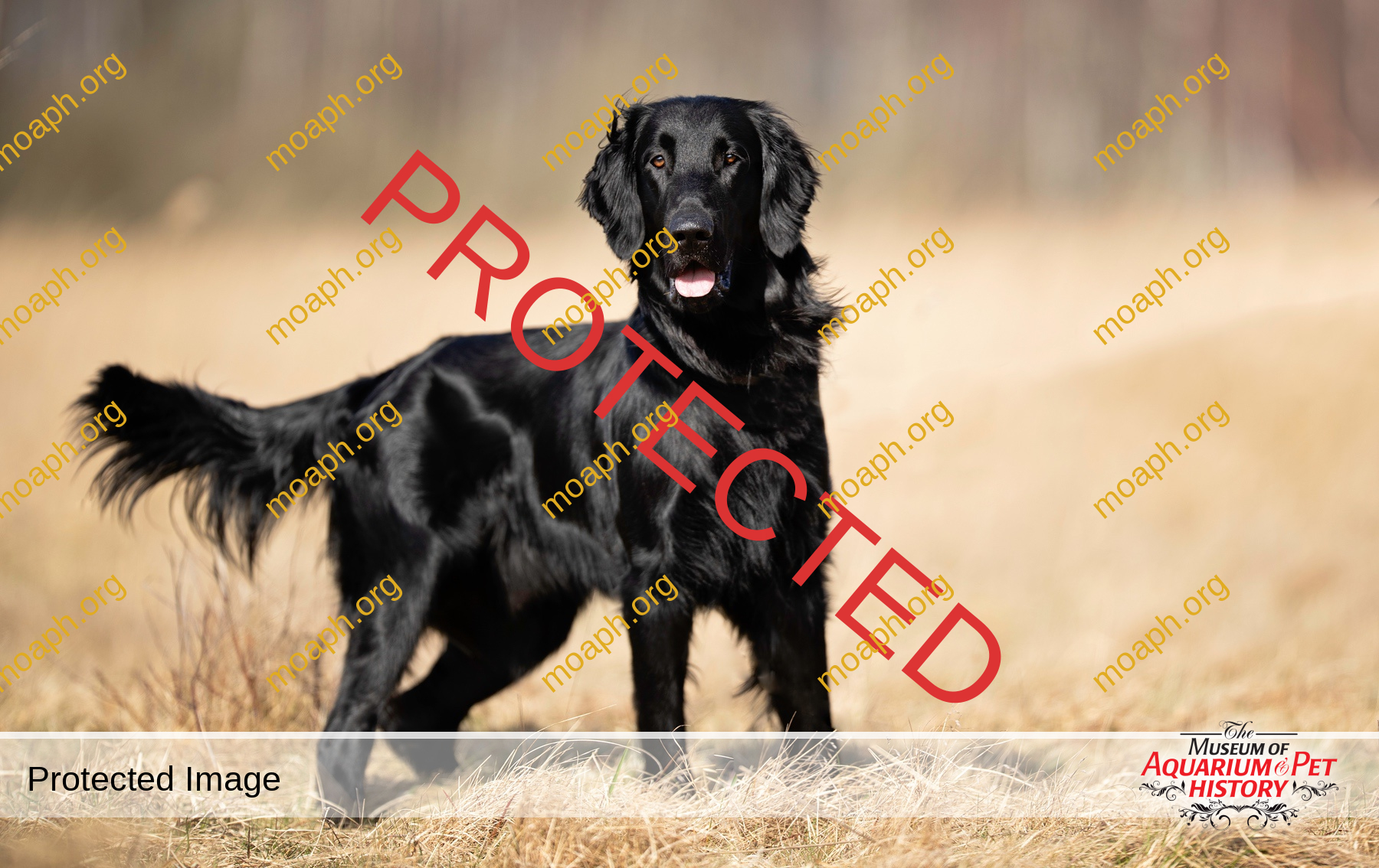 Early examples in the 19th century had wavy coats, thanks to the use of setters in the breed’s early development. As this characteristic disappeared its name had to be changed from wavy-coated to flat-coated. A ‘single colour’ breed, defined in part by its black coat.