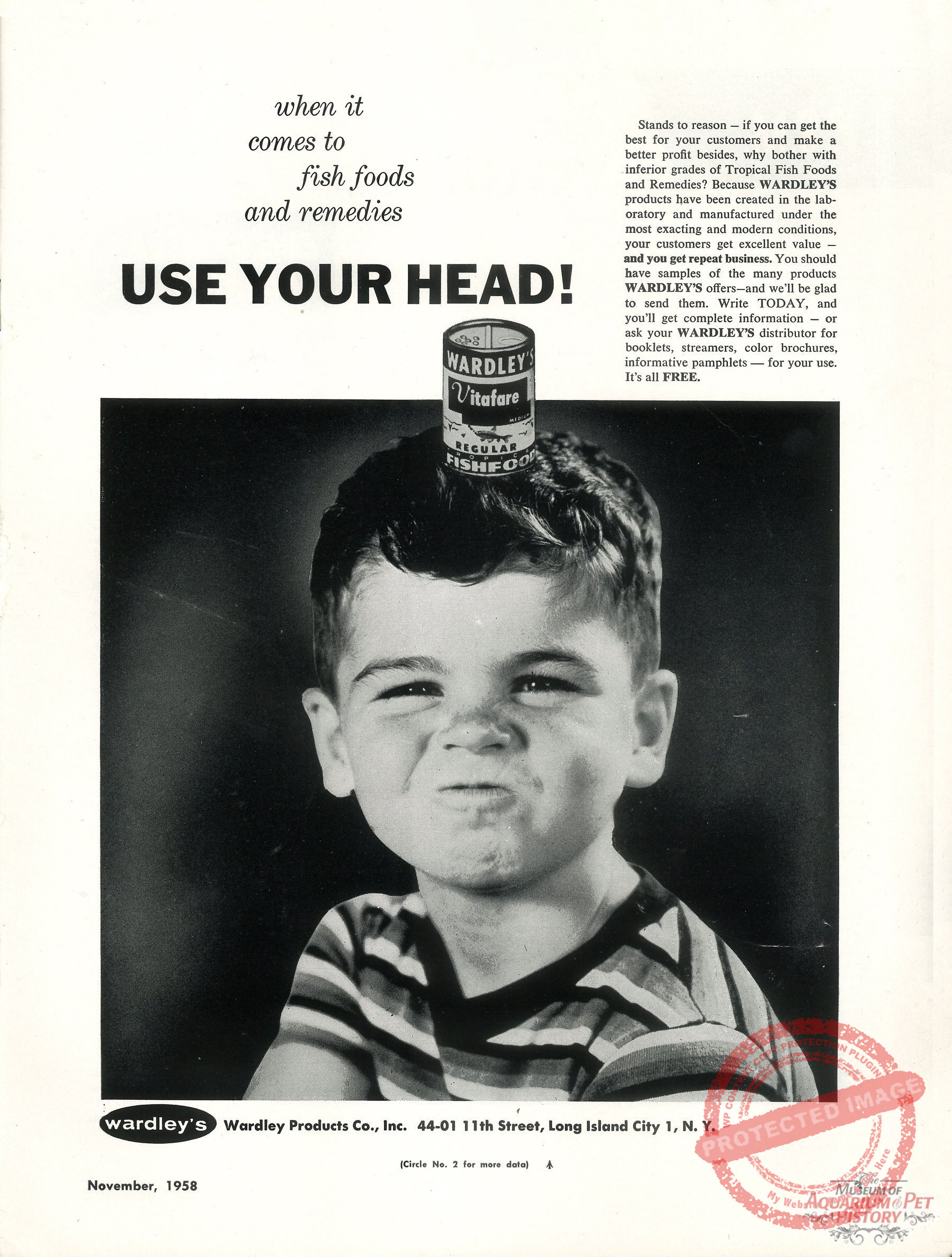 Wardley’s ad from the November 1958 edition of Pet Shop Management