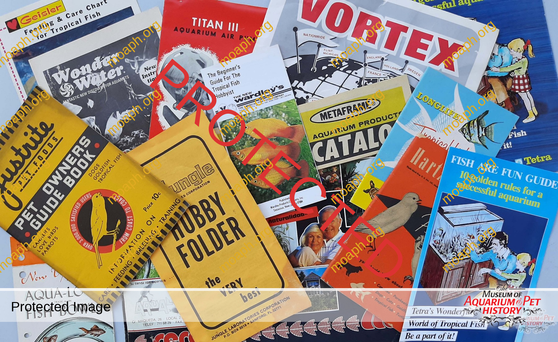 “Trade literature” is a general term including advertising, technical communications, trade journals, leaflets, price lists, and catalogs (or “catalogues” in British spelling) issued by manufacturing, wholesaling, and retailing firms. In other words, a goldmine of information about the development of the business in the aquarium industry in terms of: