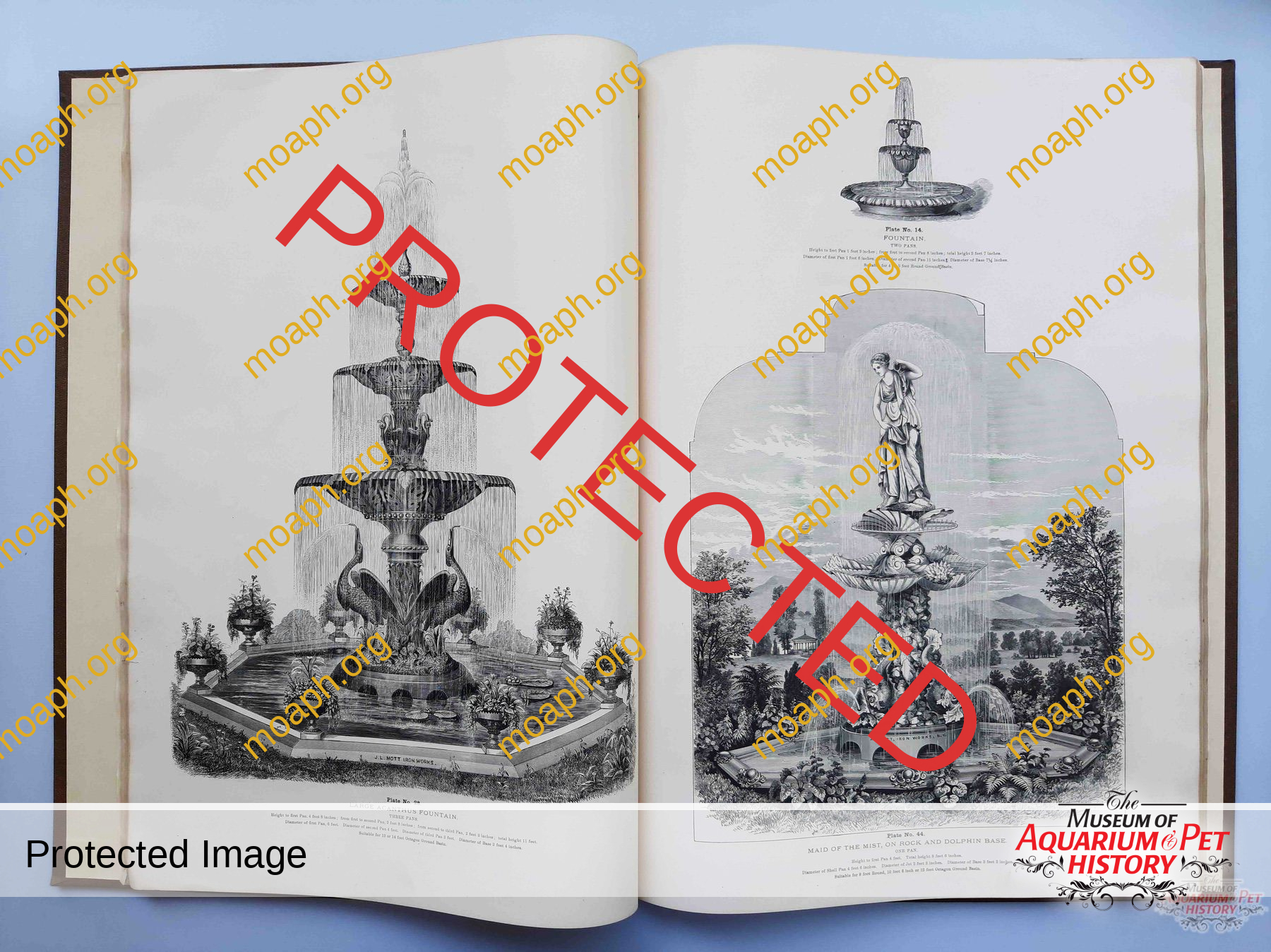 My copy of 176 pages contains 19 engravings depicting 3 rectangular fish tanks and 16 fountain aquariums, plus some of the supplemental sheets which the J.L. Mott Iron Works sent when anything new was added to their stock. I have never seen a copy with more aquarium illustrations to date.