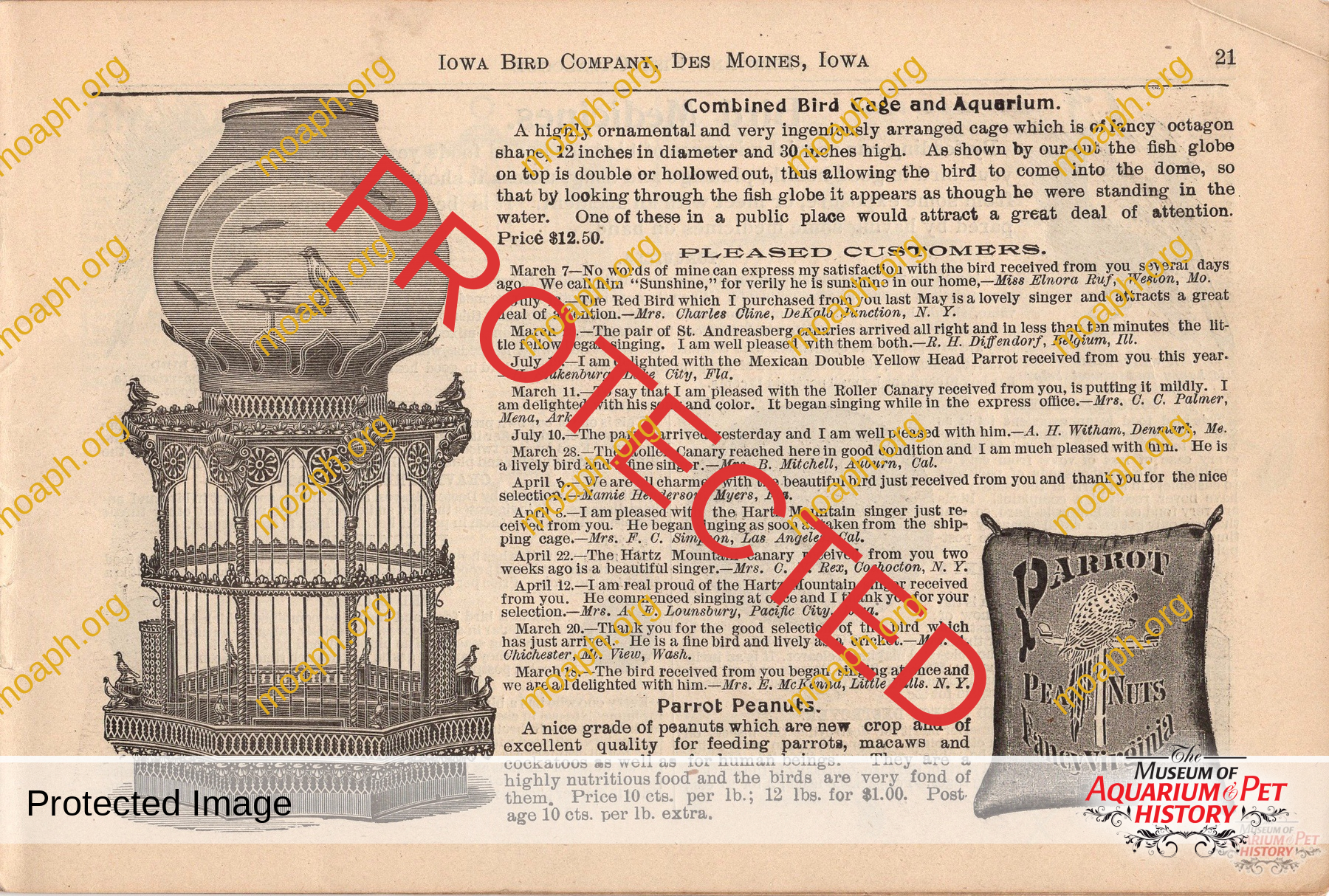 In the past, I came across a single sheet of this valuable catalog on sale for $250, and 2 genuine copies which totally lacked illustrations of aquariums. During more than 140 years a lot of things can happen to a catalog with no page numbers, therefore collectors, before the purchase, should always ask the seller how many illustrations of aquariums there are in the catalog.