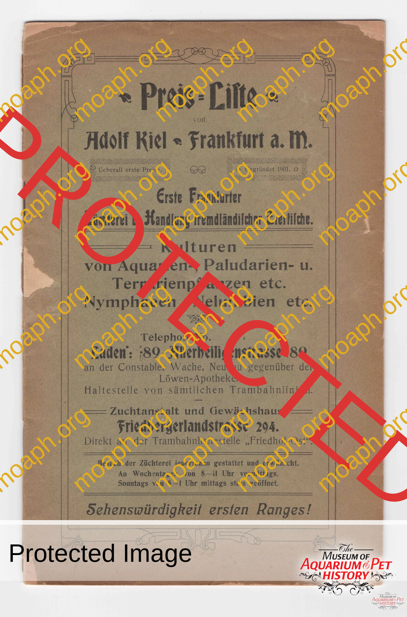 Adolf Kiel catalog. Back in 1901, Kiel founded one of the largest aquatic plant nursery in the world.