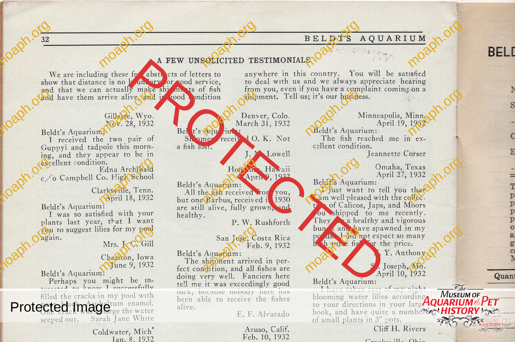 About most of the catalogs by Beldt’s Aquarium, I want to mention a simple but crucial detail that makes me love them. I’m referring to the publication date that saves the collectors a lot of research work and headaches! Many catalogs of yesteryear, in fact, are undated, and sometimes it’s quite hard to give them a reliable publication date, especially when you don’t have other catalogs from the same company to compare.