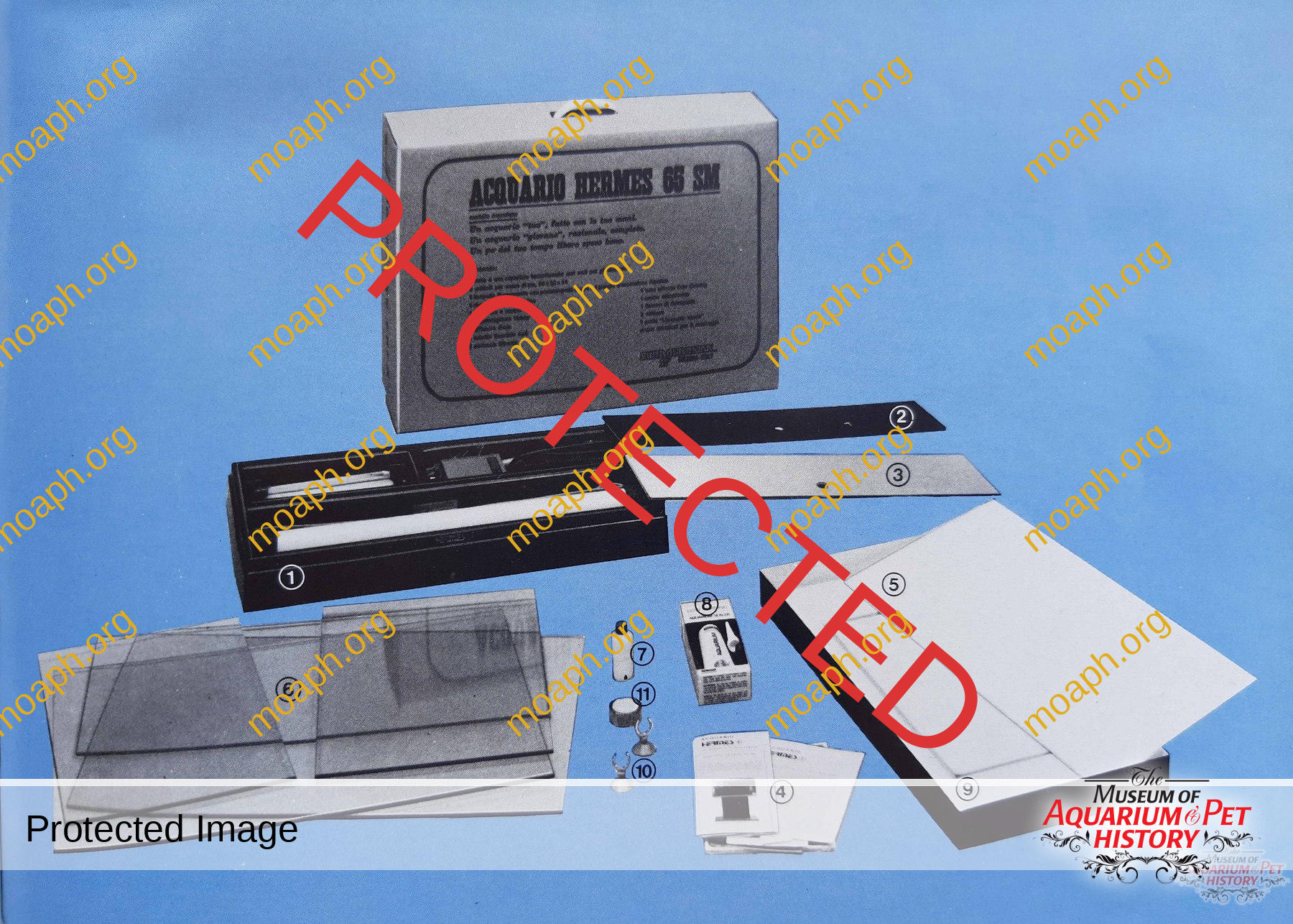 All the catalogs and price lists issued by this company are the classic starting point for Italian collectors. The earliest Acquario di Bologna price list from my collection is dated 1954. One of my favorite catalogs, quite easy to find, is the “a/11”, as inside it you can find the funny “Hermes 65 SM”, an aquarium sold as… a construction kit!