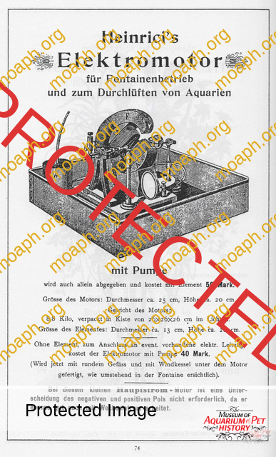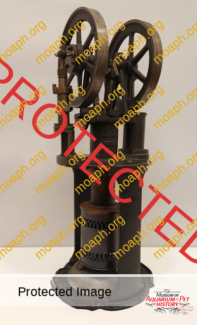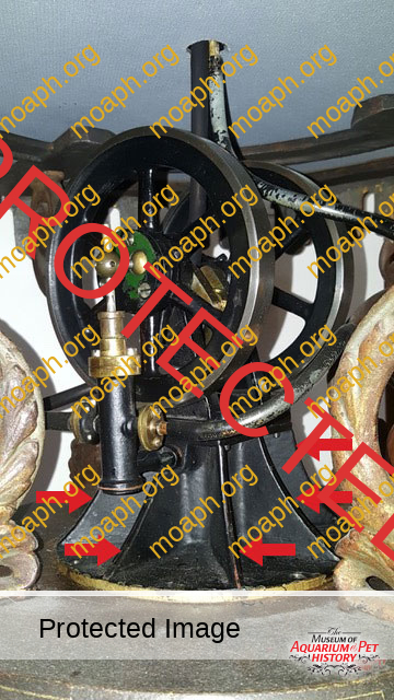 About hot air engines mounted on the parlor fountains available nowadays, the first thing to consider is that, most of the time, you cannot know if their engine is the same that initially left the factory together with the rest of the fountain. Finding a motor of the same model or similar technical features would already be a success. The illustrated catalogs of manufacturers and retailers can certainly help us, at least to understand if the fountain we would like to buy was originally equipped with a water-cooled single-cylinder engine or with an air-cooled double-cylinder engine. The early generations of Heinrici fountains, for example, had water-cooled single-cylinder pumping engines, a type of motor that is also remembered as one of the early heaters for aquariums (unfortunately not adjustable). The water, in fact, passing continuously through the “water jacket” heated up before flowing back to the fish tank.