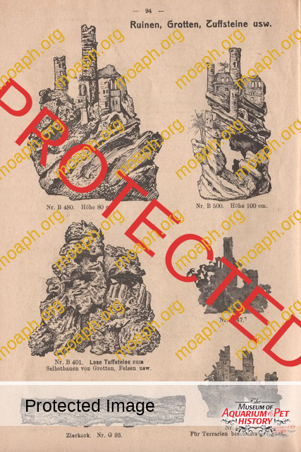 Emil Reichelt catalog (Berlin, 1909-1910 edition). The stamp belonged to one of the early Italian importers of parlor fountains. Note also the giant decoration made of tuffstone.