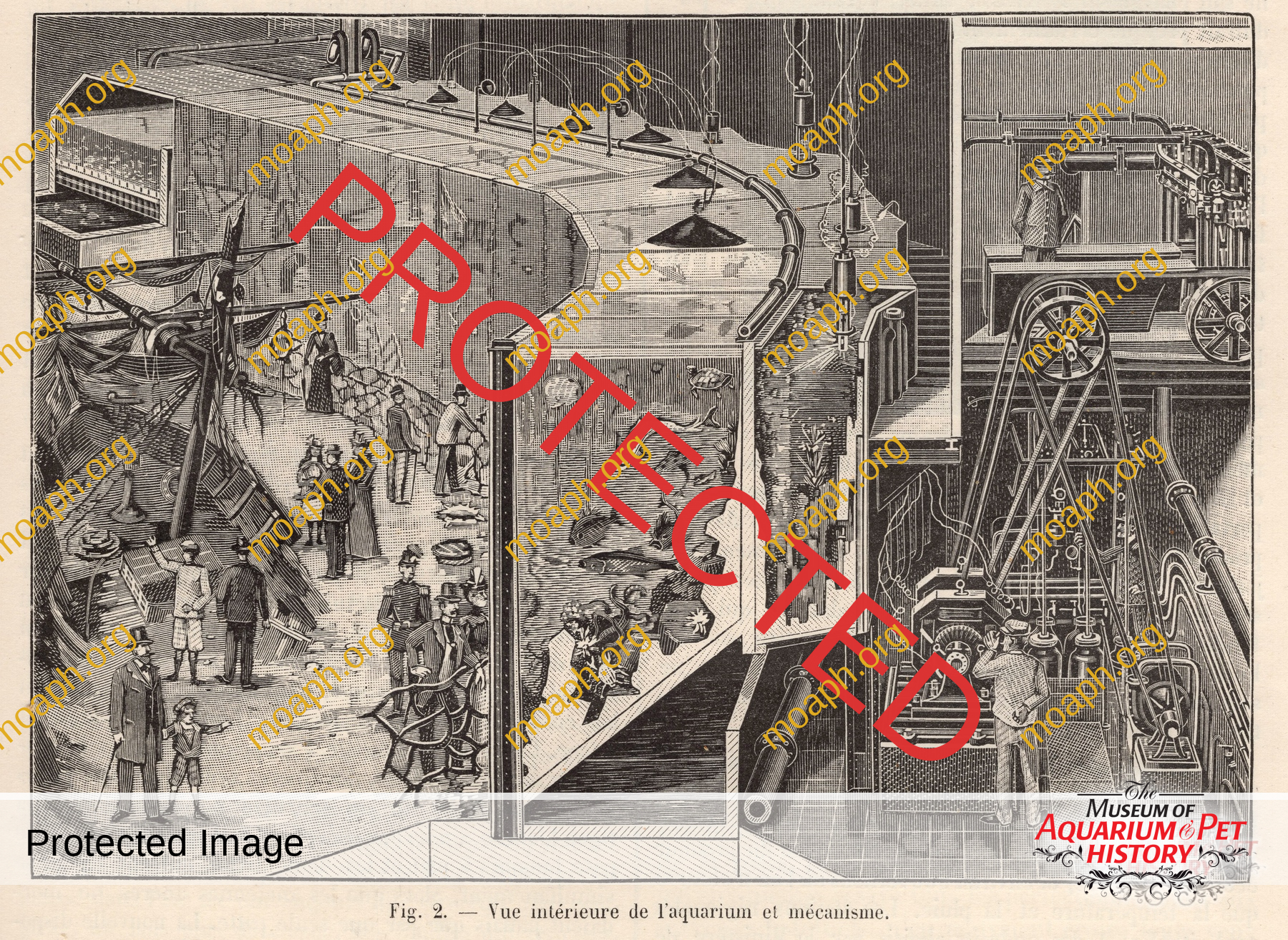 Close-up from the iconic illustration of the Aquarium de Paris published by La Nature – Revue des sciences et de leurs applications aux arts et à l’industrie (Vol. 28, No. 1425, September 15, 1900, p. 253). Notice the railing.