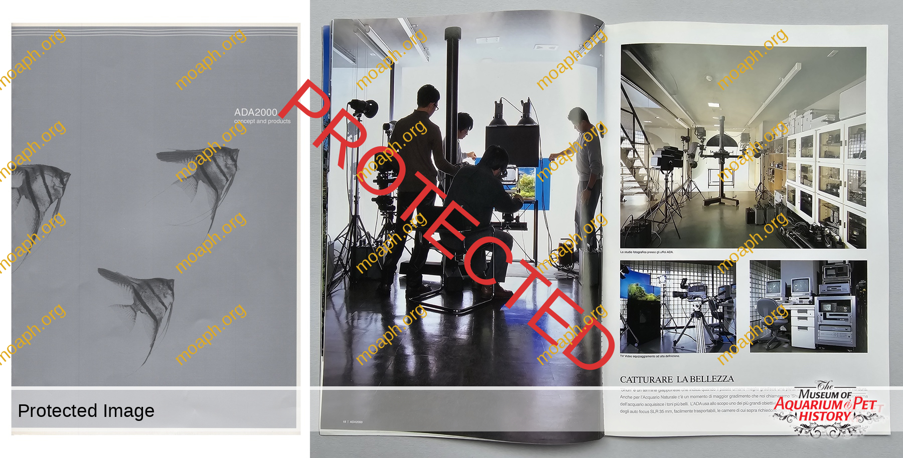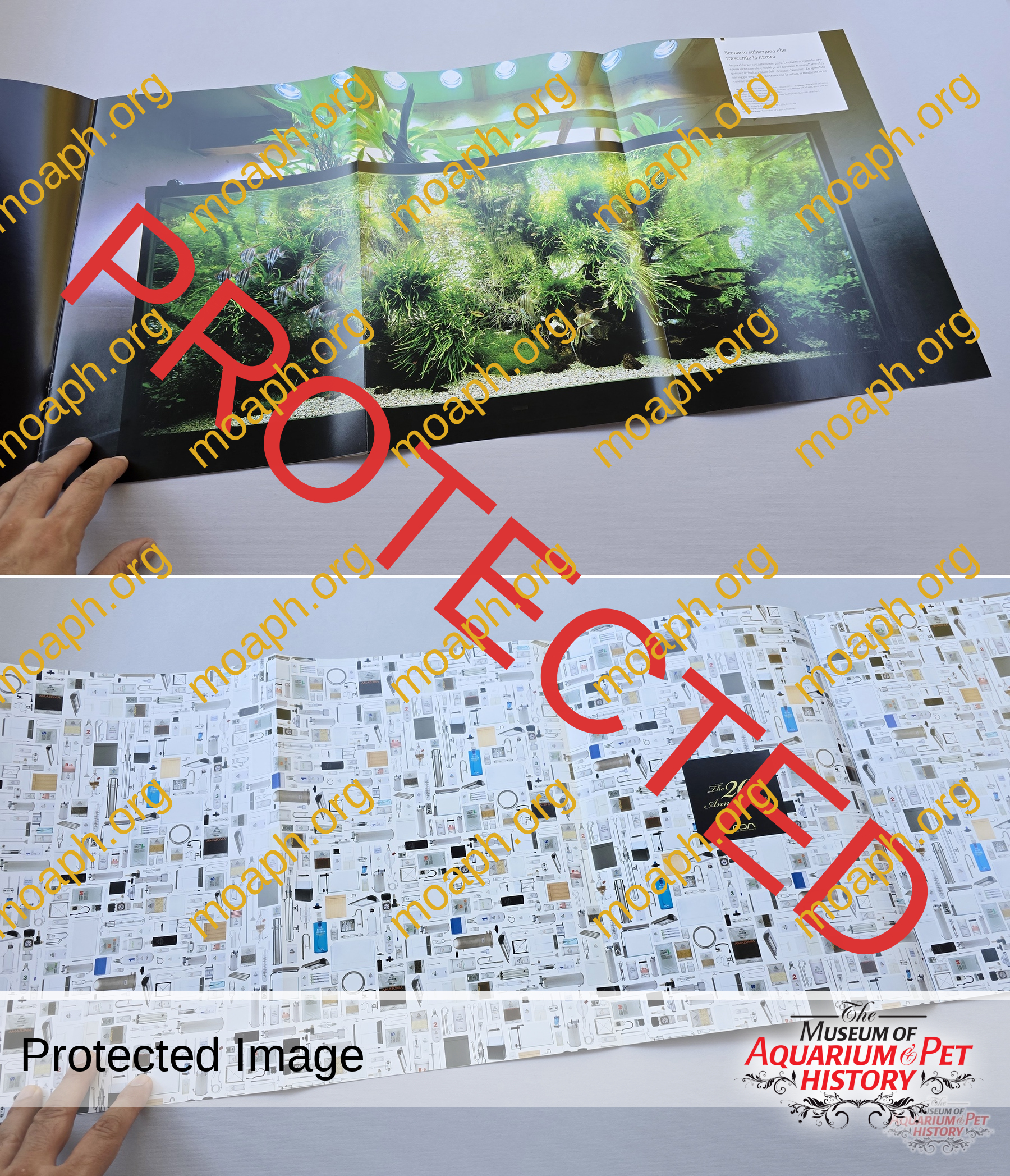Published for ADA’s 20th anniversary (2012), this phenomenal large format brochure was available for free in ADA’s retailers. Among the multiple stunning images, it contains also a triple-page photograph of the four-meter long aquarium set up by Amano in his house in 2001. This huge tank quickly became famous and brought ADA a series of proposals to build other large aquariums, such as the Sumida Aquarium in Tokyo, and Florestas Submersas in Lisbon.