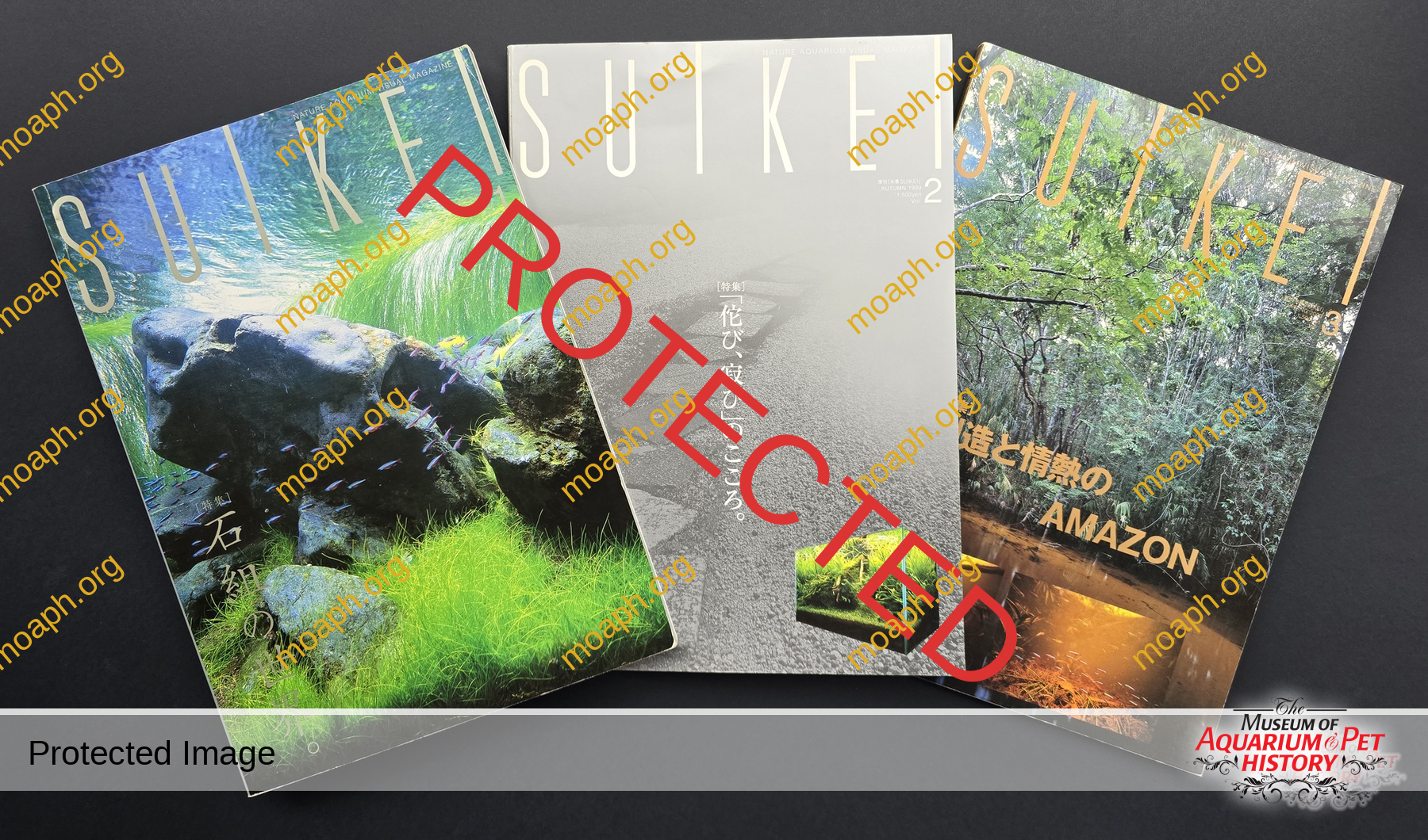 In 1999 ADA temporarily suspended the publication of the magazine Aqua Journal, and launched Suikei and Do!aqua. The short-lived quarterly magazine Suikei in particular was something never seen before in our hobby, a masterpiece of graphic quality in every sense. This picture shows the popular and sought-after Suikei trilogy.