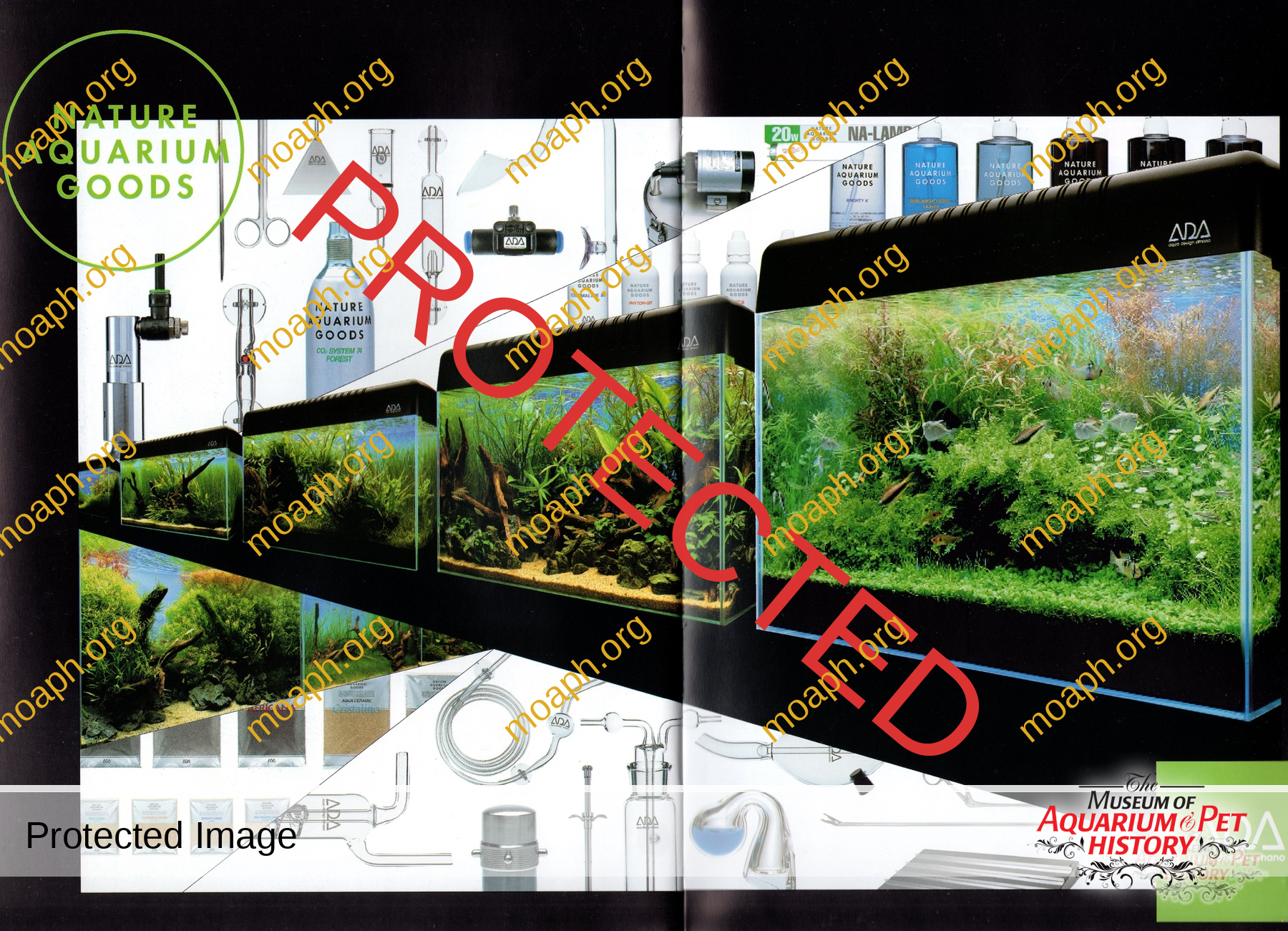 In 1996, the global market met ADA during the Interzoo (Nuremberg, Germany). This vintage photo panel was on display at ADA’s booth, and was used in later events such as Zoomark International 1997 (Milan, Italy), Aquarama 1997 (Singapore), and Interzoo 2000. Today, this veteran of the pet trade fairs rests in the author’s collection.