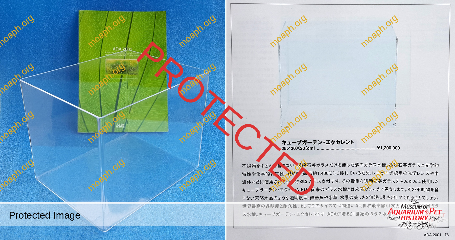 In 2001, ADA advertised this crazy aquarium in the beautiful and rare “leaf catalog”. The price for the tank was 1,200,000 yen, which in 2001 amounted approximately to $9,900. As far as I know, only a couple of specimens were manufactured by hand before the project failed for technical reasons. A few years ago, I was so lucky to see a Cube Garden Excellent with my own eyes. Taking into account its small size, it has been one of the most expensive aquariums which I have ever come across in my career as a photographer and collector.