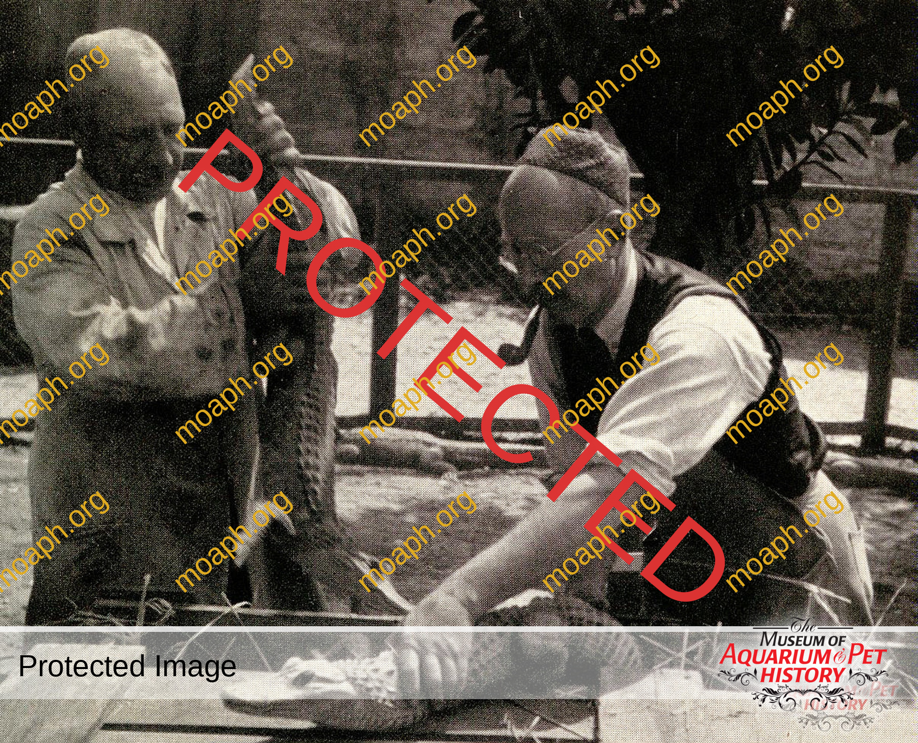 Animal keeper Hennecke as well as Mr. Abacheff knew exactly how to properly handle the reptiles of the show, shown here are two Mississippi alligators being packed into crates.