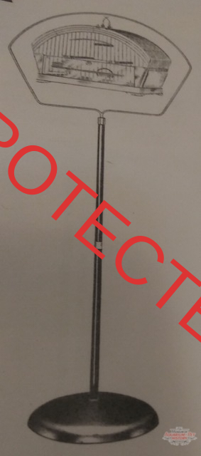 Of course, Hendryx also sold bird cage stands. These were sold separately, but often conformed to the shape of the cages. Some were like ornate tables, while others had a base, pole, and “harp” from which the cage was hung.