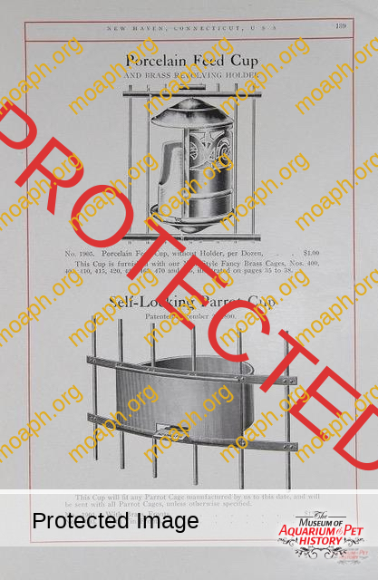 Starting in the 1800s there were many metal companies making bird cages to house these popular pets. Crown, Leon, Gunther, Osborn, OL&Co owned by Otto Lindemann, and the premier cage maker, Andrew B. Hendryx, whose popular catalogs once listed over 350 cages! Later there were cages made by Pacific, Hoei, Penn-Plax Euro, Prevue, and the list goes on. Early cages were made of solid brass, Japanned (painted) tin, stainless steel and various metals with various finishes. They came with seed guards made of screen, glass, and later plastic. Many of us, at one time or another, have probably owned at least one Hendryx bird cage!