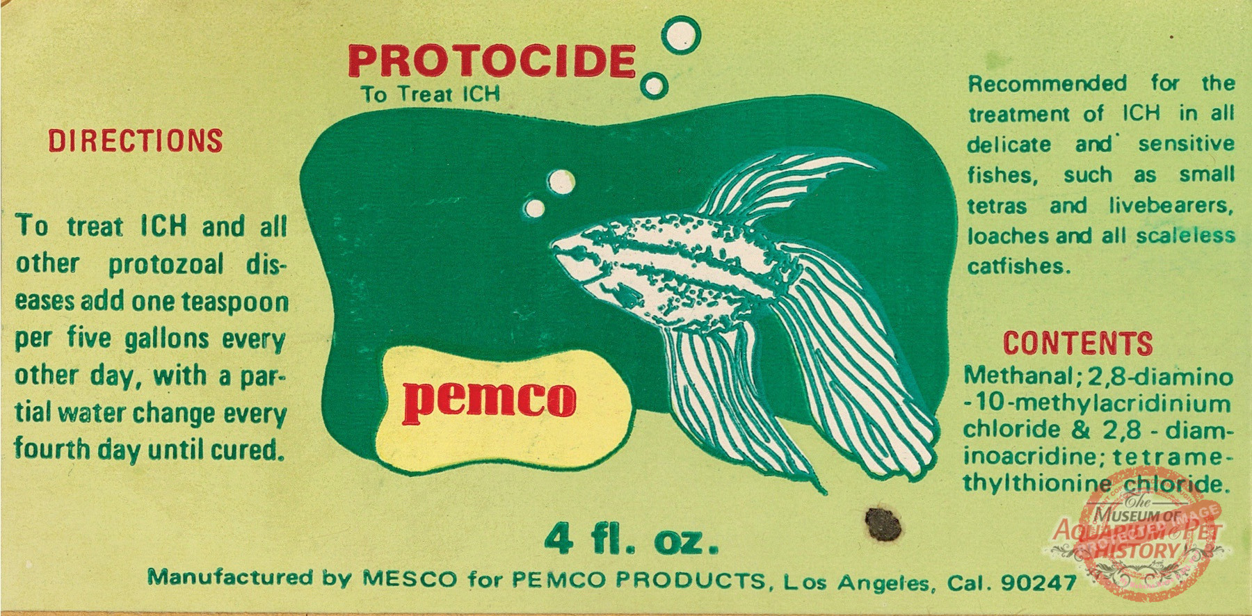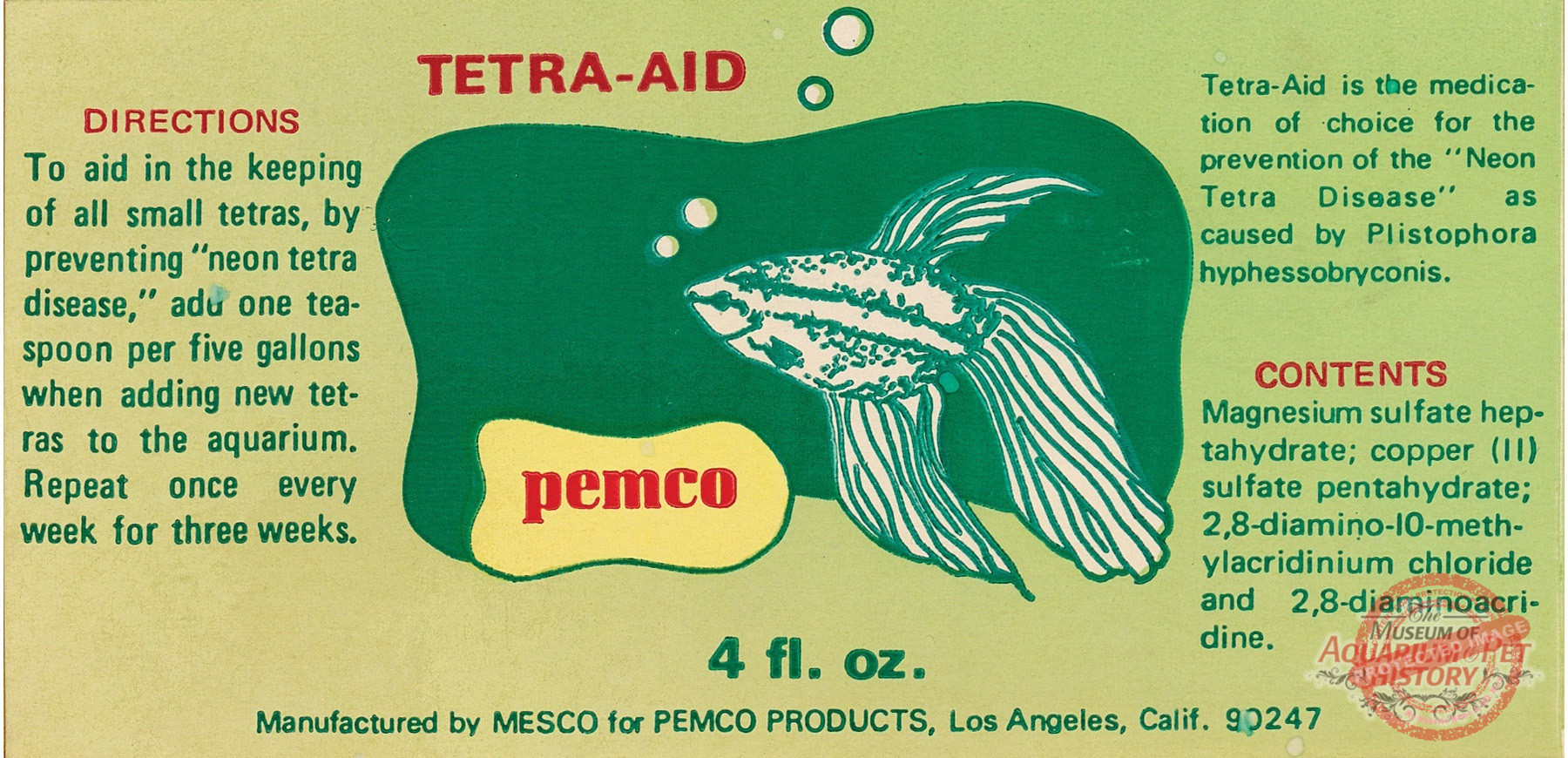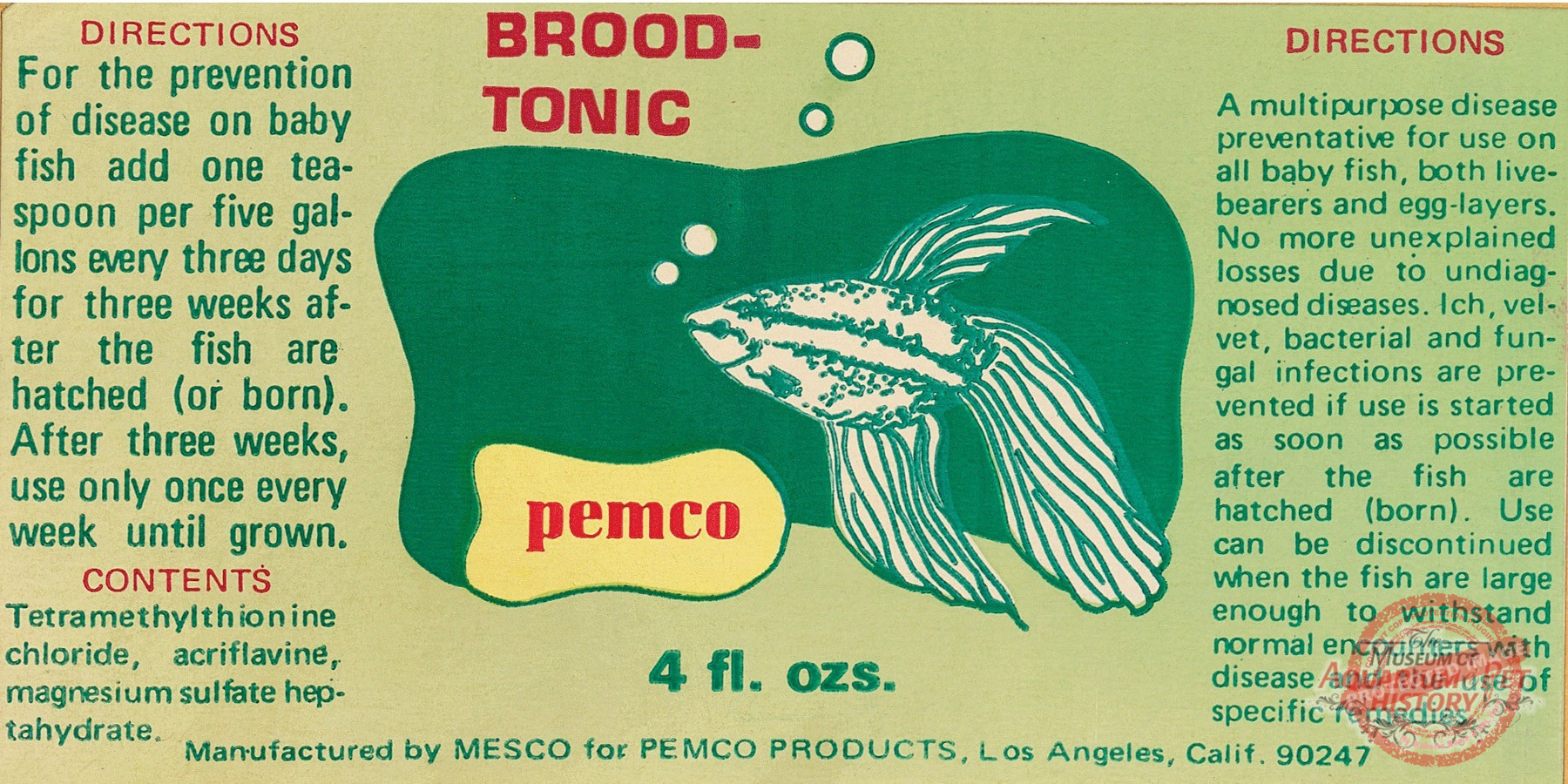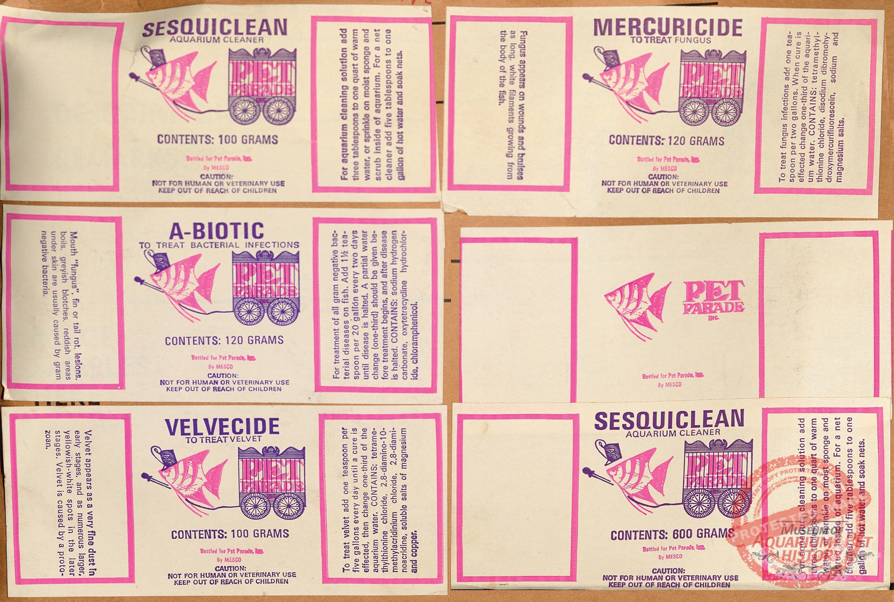 After the Museum of Aquarium and Pet History purchased the remains of the Mesco Company, we uncovered printing plates and labels for both PEMCO (aquarium manufacturer) and Pet Parade (pet store chain?). Mesco must have private labeled products for both these companies.
