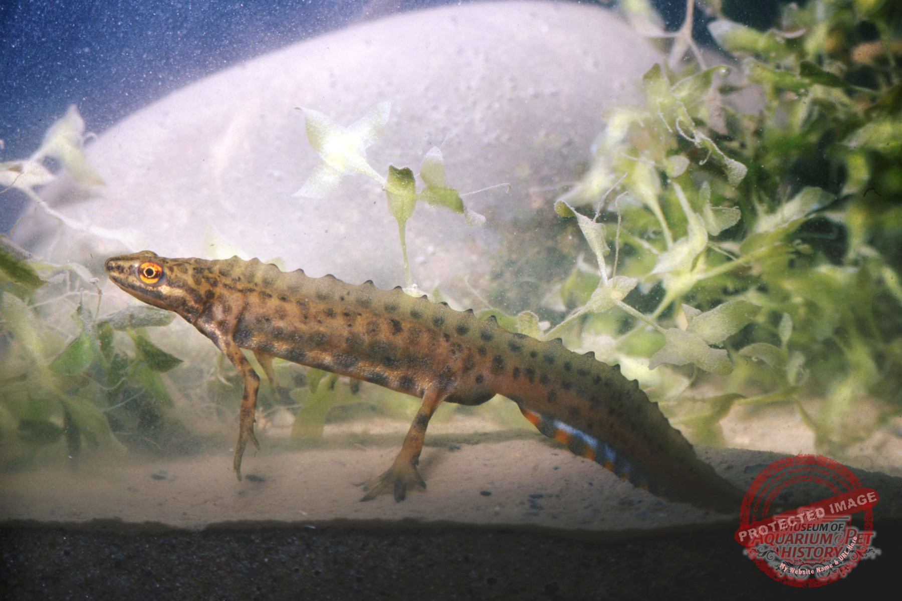 My mother recognized my boundless curiosity. Near our garden, just four hundred meters away, ran the Leina Canal. One of its offshoots, the “Narrow Rhine,” flowed behind our fence, feeding ditches along the nearby railway line. In one of these I discovered strange creatures: olive-green newts with orange bellies, one male resplendent with a jagged crest, a bluish tail, and spots. They were smooth newts (Lissotriton vulgaris) in their breeding season, as my mother read to me. I captured a few and placed them in the largest container available—a ten-liter preserving jar.