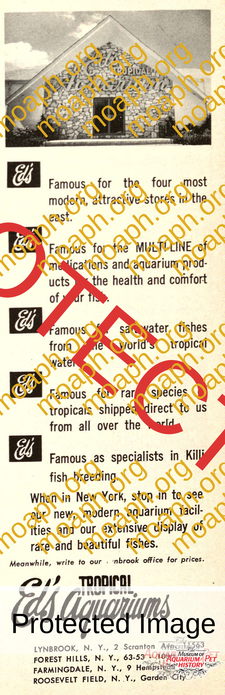 Eventually, when Mr. Kovar realized that I had some fish knowledge, they asked me to work at their Exotic Aquarium shop in Bayshore. I jumped at the chance. It was a busy shop and I sold lots of fish and supplies.