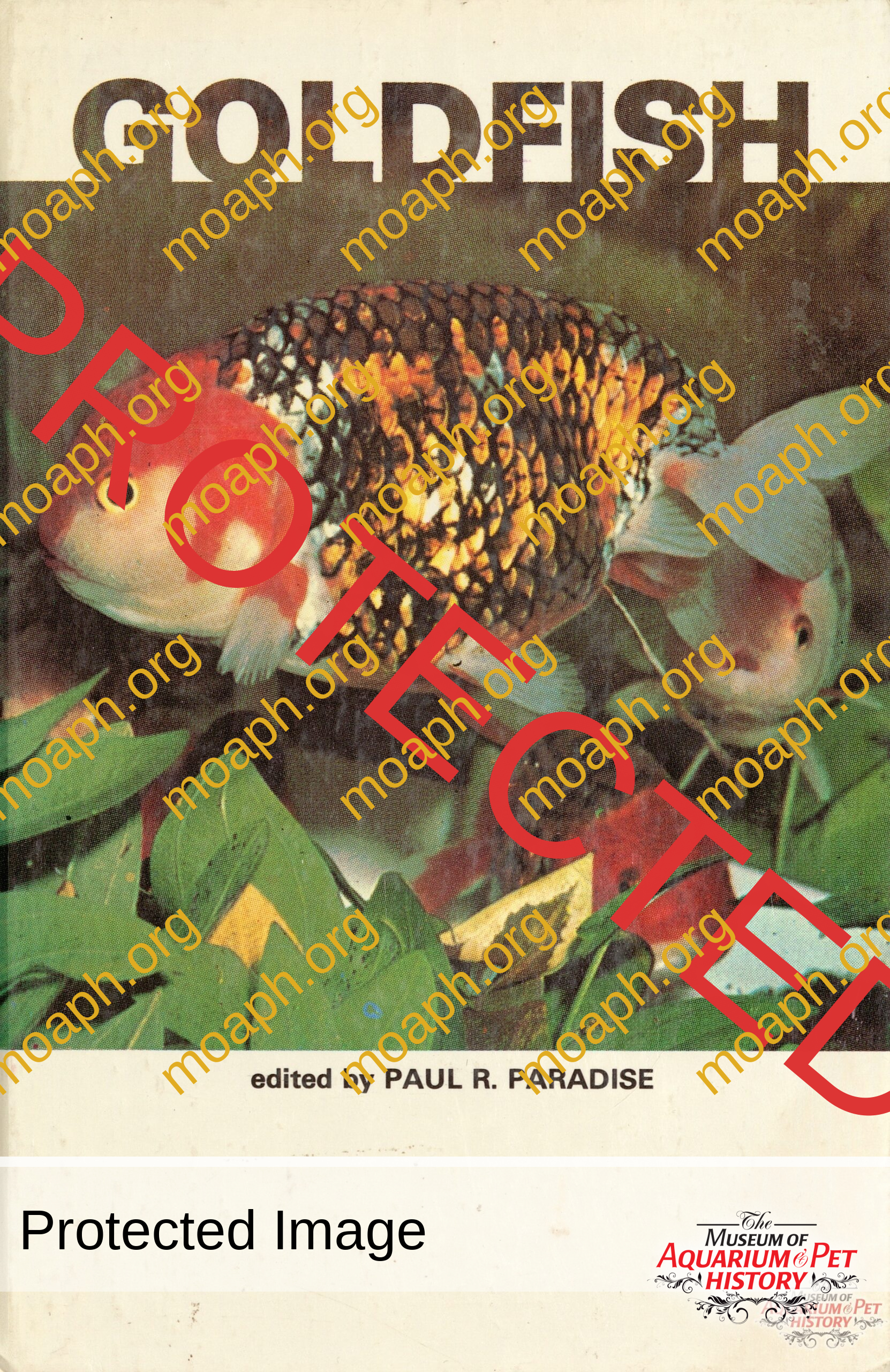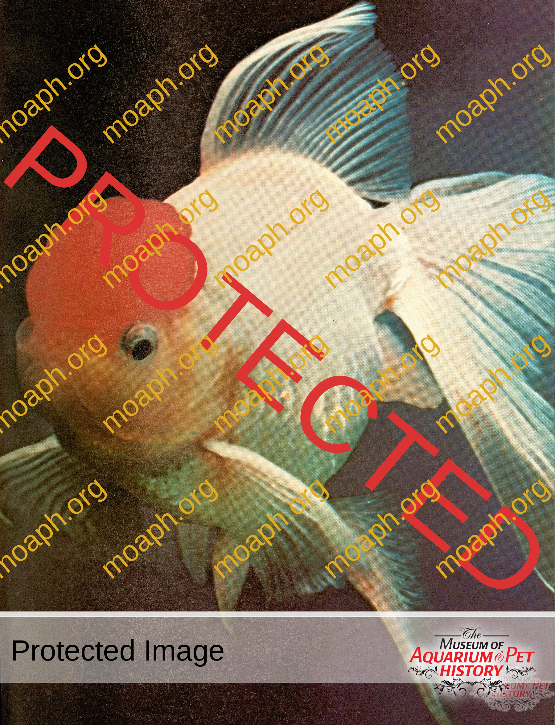 Photos of fancy goldfish from books published in the late 1940s through early 1980s.