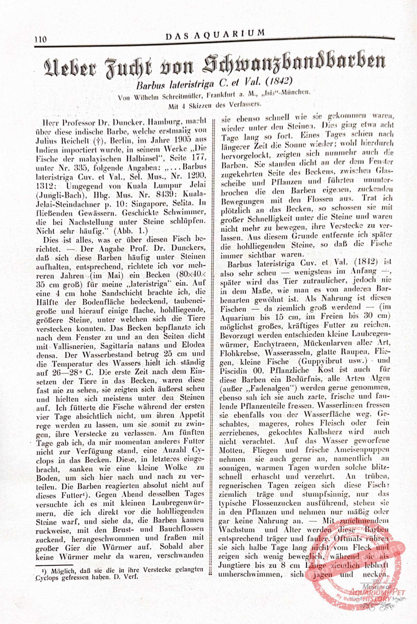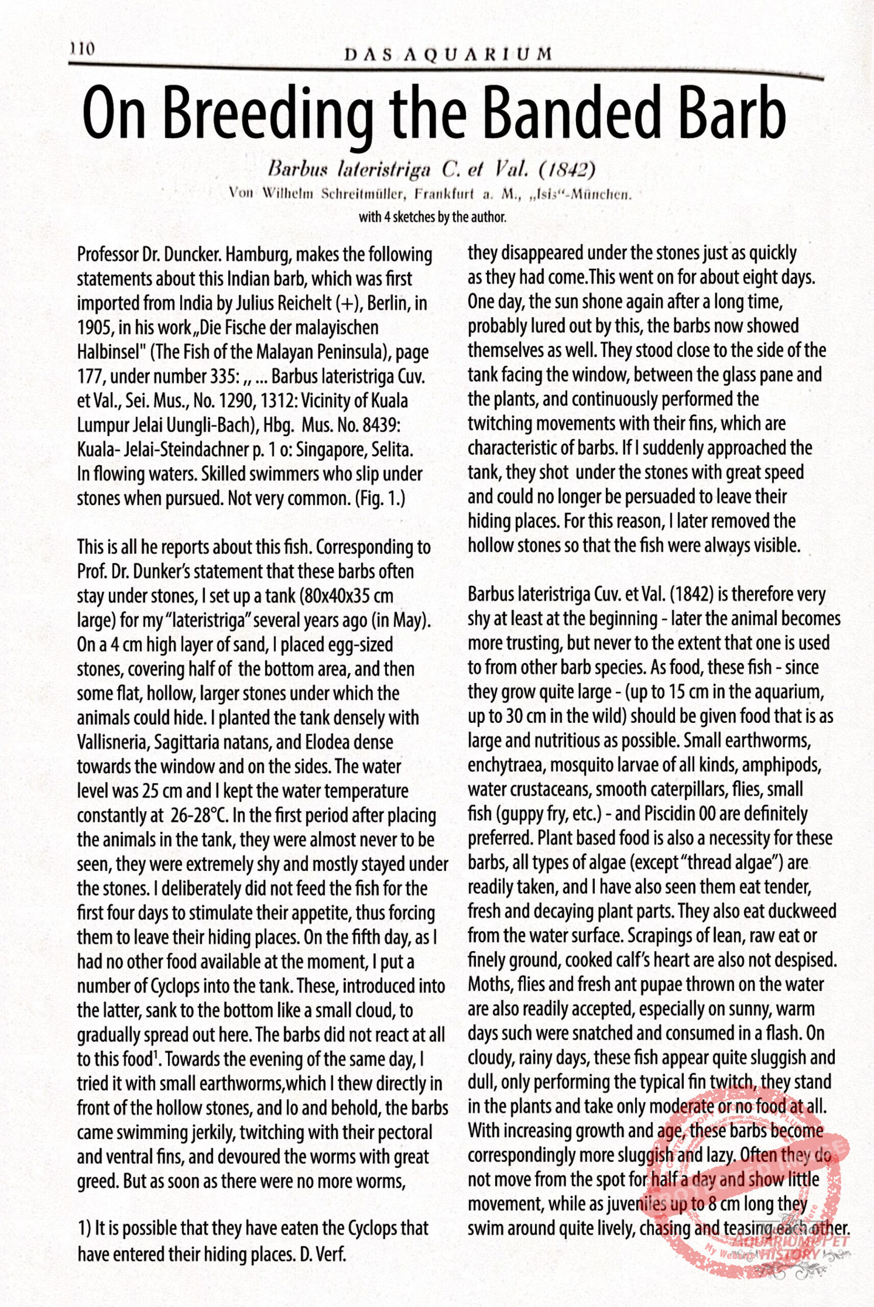 My thanks go to my family members (Charly Fuchs), to friends and colleagues in Gotha—especially Uwe Heustock, current chairman of the Gotha Aquarium Society—and to the staff of the Gotha City Archive, Dr. Julia Beez and Dorett Sagner, for granting access to documents, as well as for providing photographs, information, and preserved original artifacts.