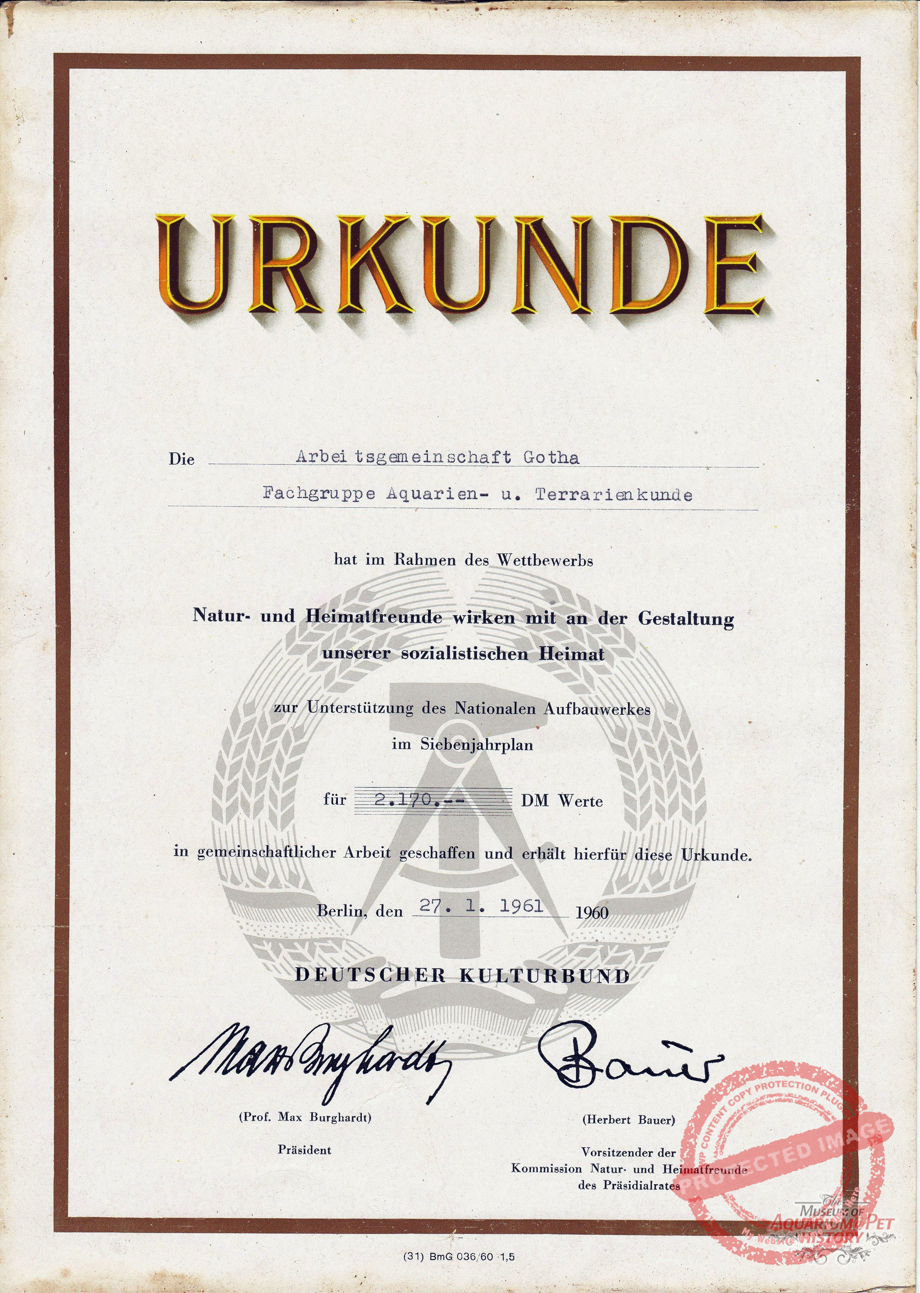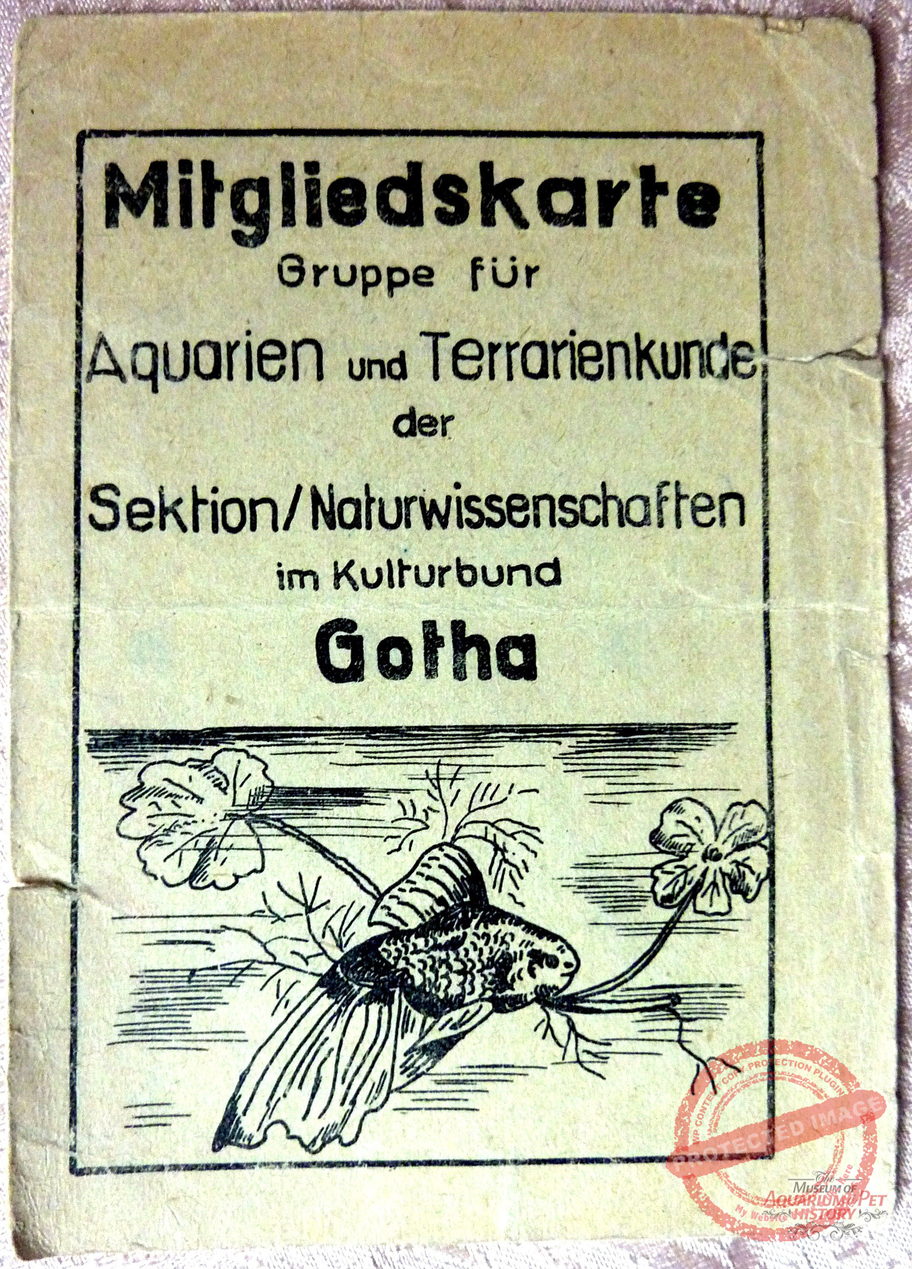 The first membership card of the Aquarium and Terrarium Group within the Natural Sciences Section of the Kulturbund Gotha