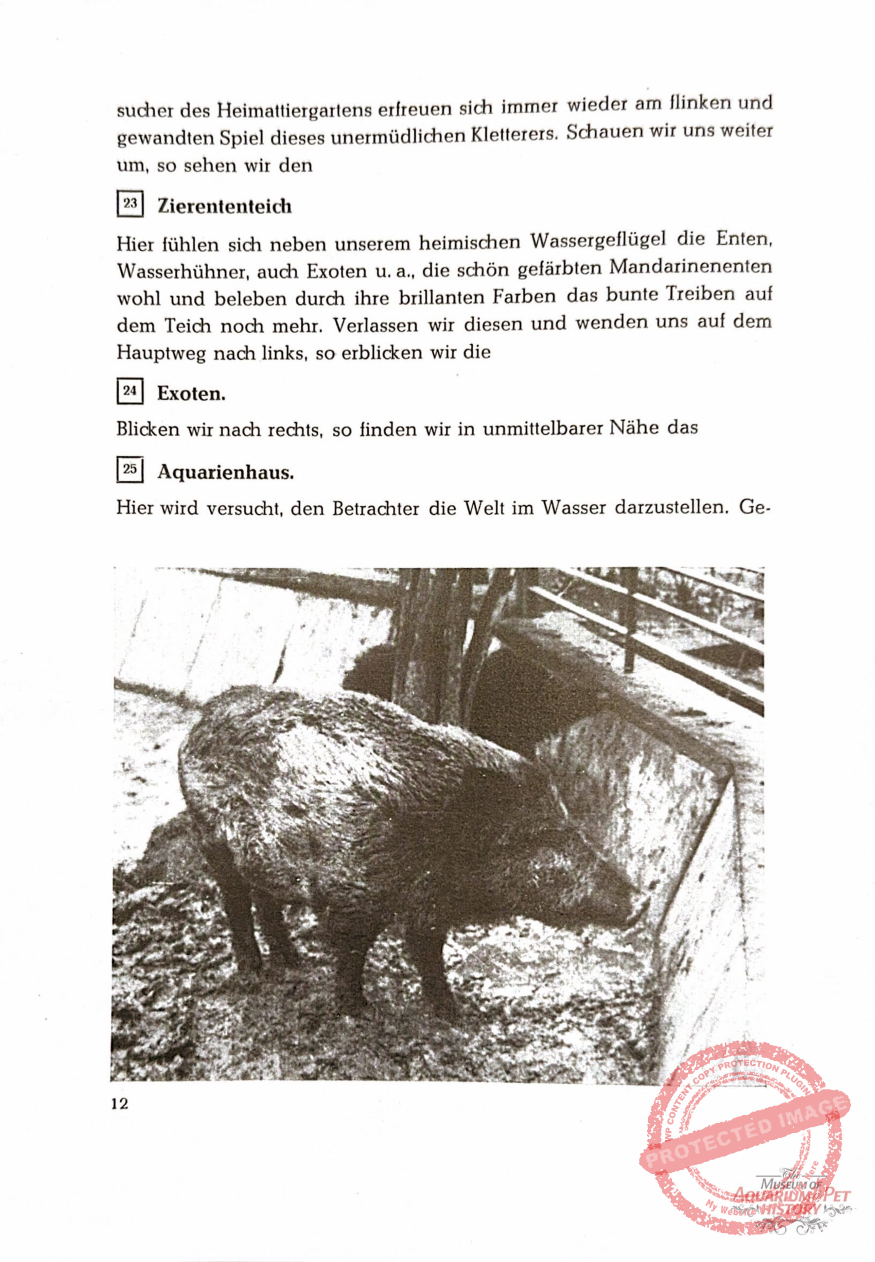 Yet the increasingly species-rich Heimattiergarten (little Zoo) could no longer be maintained by the hobbyists alone. Full-time staff provided by the city became necessary. Although the association was granted a consultative role in the facility’s development, the sacrifices of its members went largely unrecognized once the site became municipal property. The socialist state assumed control, shaping and managing it according to its principles under a politically approved director. During the 1950s, the aquarists still participated actively, but their involvement gradually diminished.