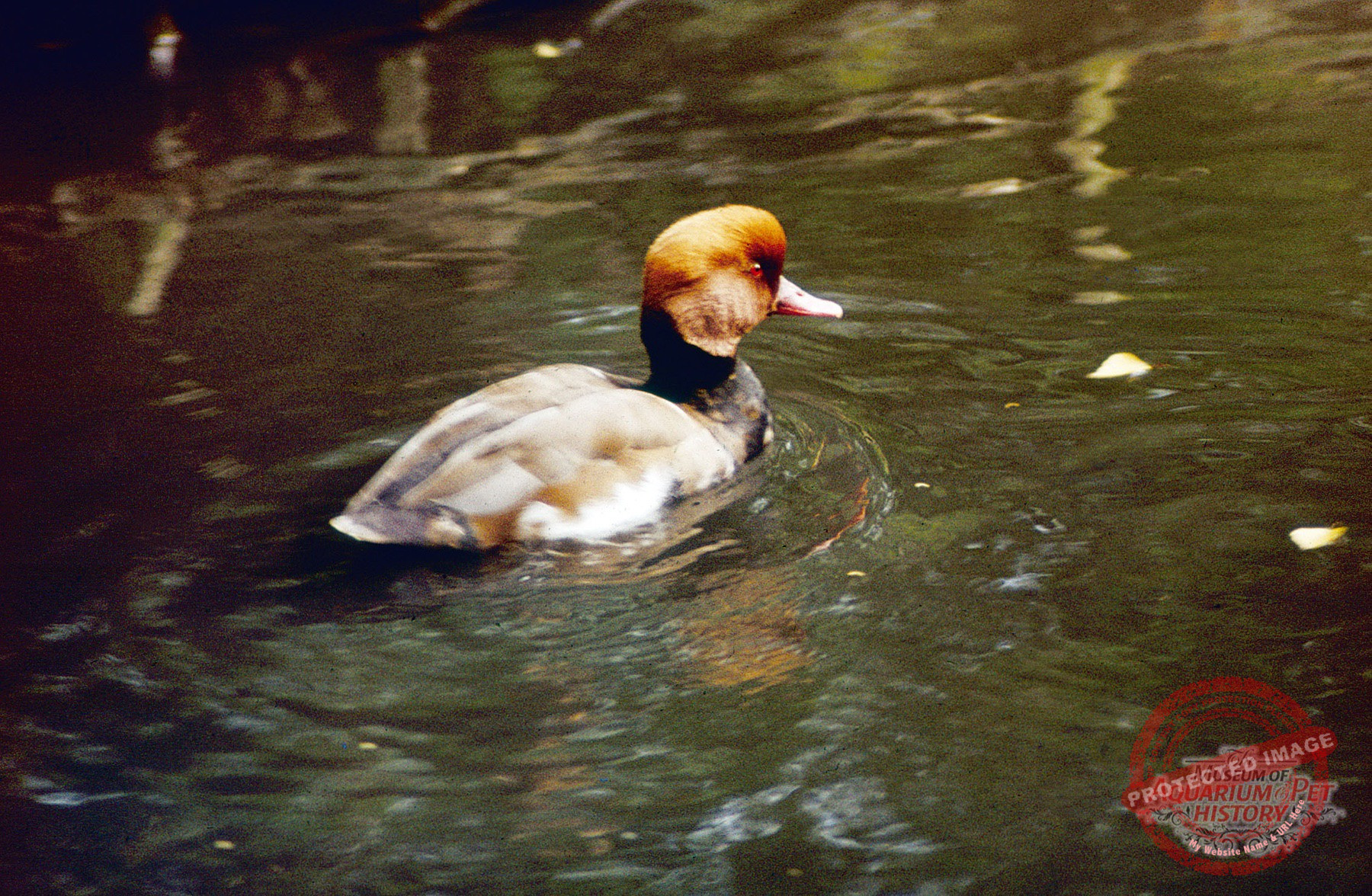 Red-crested pochards, Netta rufina, were the most lively inhabitants of the pond that housed many species of dabbling and diving ducks