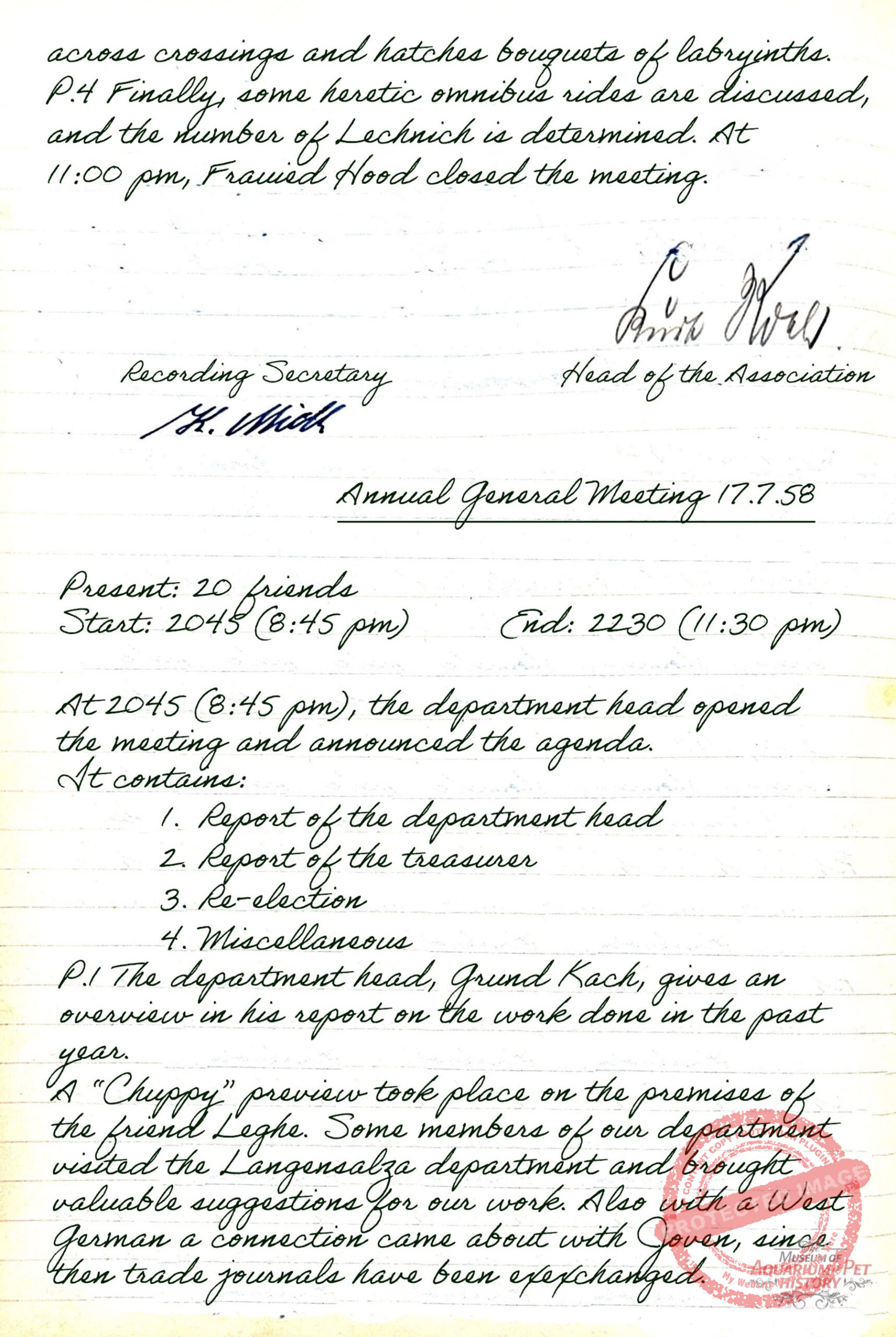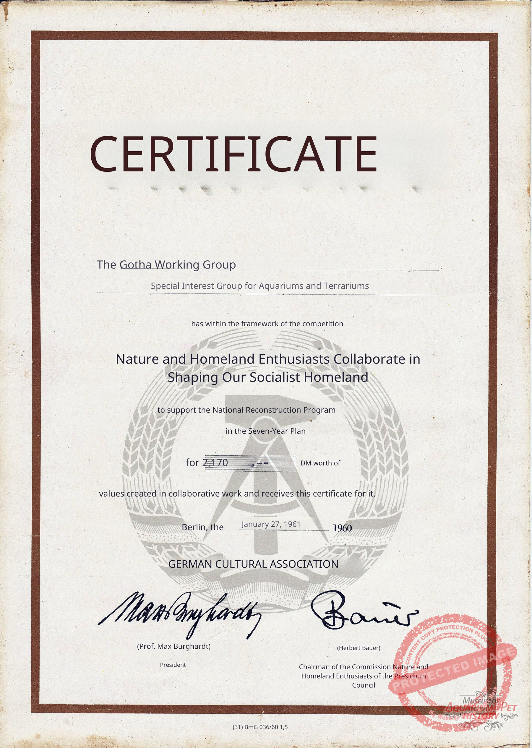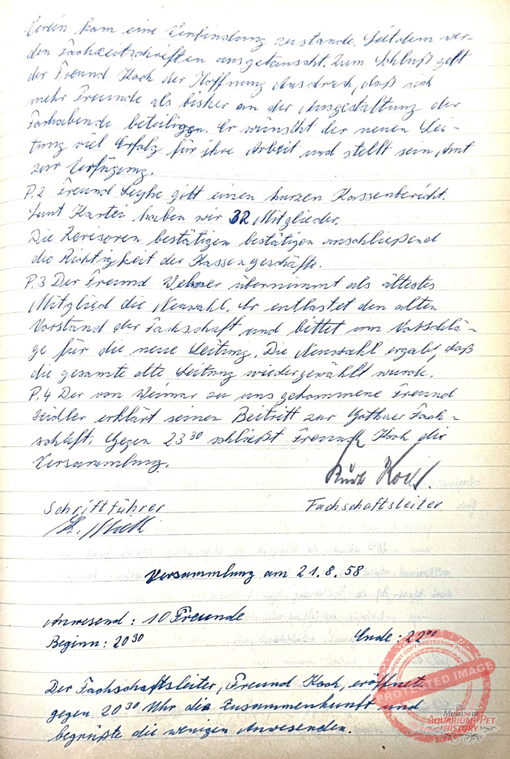 Kurt Koch proved an able chairman—now termed “section leader” within the Kulturbund. Records from a club meeting on 17 July 1958 show that he was re-elected, reflecting the renewed emphasis on democratic, collectively accepted decisions after years of dictatorship. Despite ongoing scarcity, Gotha’s aquarists remained optimistic and forward-looking. The same record notes contact with a West German association, enabling an exchange between the GDR journal Aquarien Terrarien and the West German Die Aquarien- und Terrarienzeitschrift. Such exchanges remained possible until the summer of 1961, after which all connections were severed by the GDR leadership.