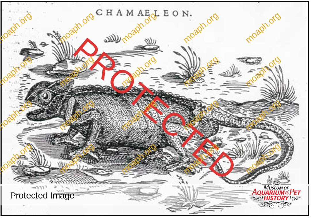 Early illustrators and naturalists during the 15th and 16th centuries were often at a loss to produce lifelike representations of chameleons. In 1497, a woodcut showing a “gamaleon” was published in a body of works called Hortus sanitatus [Garden of Health], but the creature looks more like a canine with wings than a chameleon (Figure 1). Chameleons do not look or act like other lizards — rotating eye turrets, zygodactyl feet, extensible prey-catching tongues, prehensile tails, elaborate ornamentation, and rapid color changes — so it is not surprising that these artists were bewildered. The common chameleon, due to availability, was often the subject of European authors and artists.