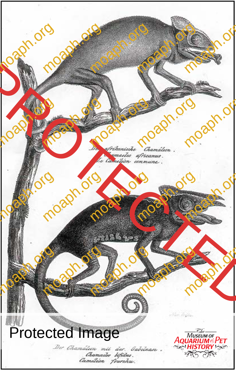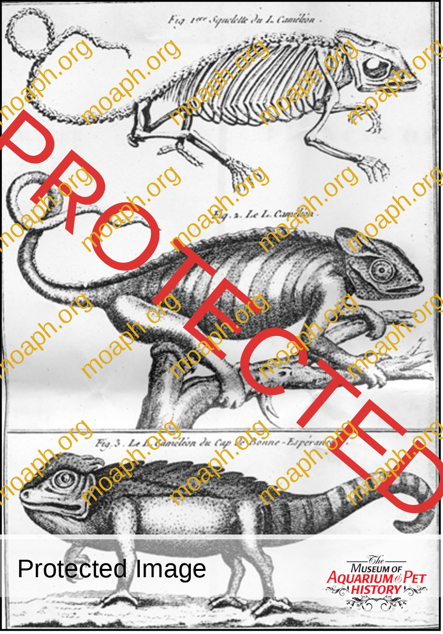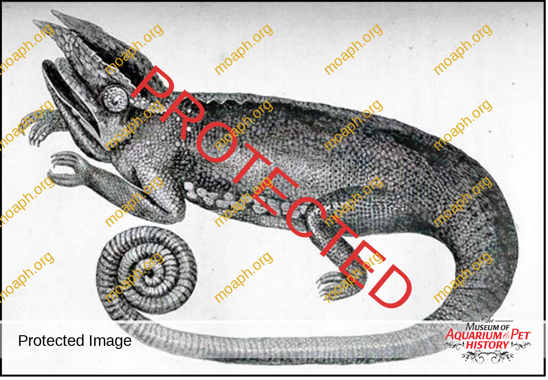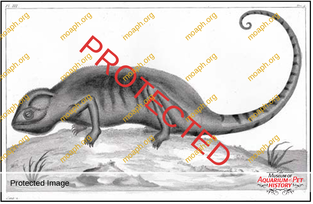 Quoting from Murphy (2005): “European chameleons are delicate captives and multi-generations are uncommon even today (Neèas, 1999). Hence, it is remarkable that Johann von Fischer kept colonies in Vienna in 1882 and made detailed observations on capture, transport, husbandry, behavior, color- ation, and reproductive biology. His studies have been largely unavailable to English readers . . . ” Those studies (Fischer, 1882) were translated by Lucian Heichler in Murphy (2005). Fischer’s 120-year-old examination was written in remarkably archaic German — with spellings that have not been used in many decades. Clearly, he was concerned about the humane treatment of chameleons and passionately pleads for proper care during capture and transport.