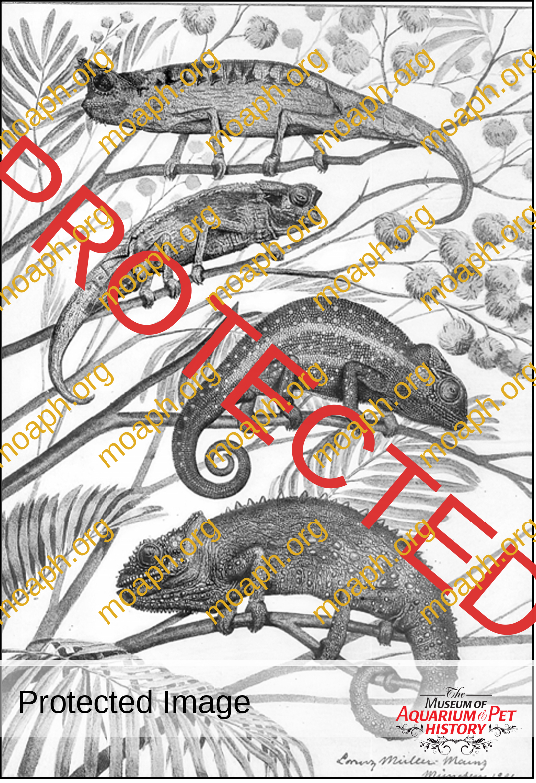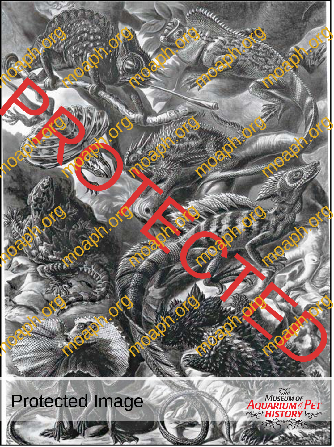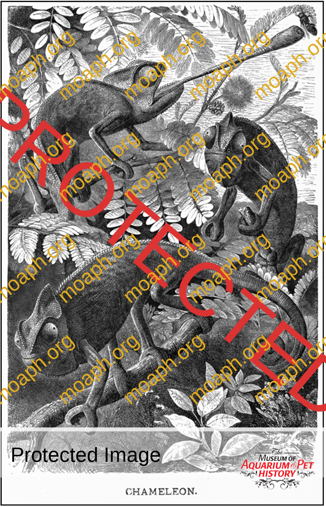 Figure 11. Illustration of chameleons in Animate Creation: Popular Edition of “Our Living World,” a Natural History, by the Rev. J. G. Wood. Revised and Adapted to American Zoology, by Joseph B. Holder by J. G. Wood circa 1885. From the collections of the Ernst Mayr Library, Museum of Comparative Zoology, Harvard University.