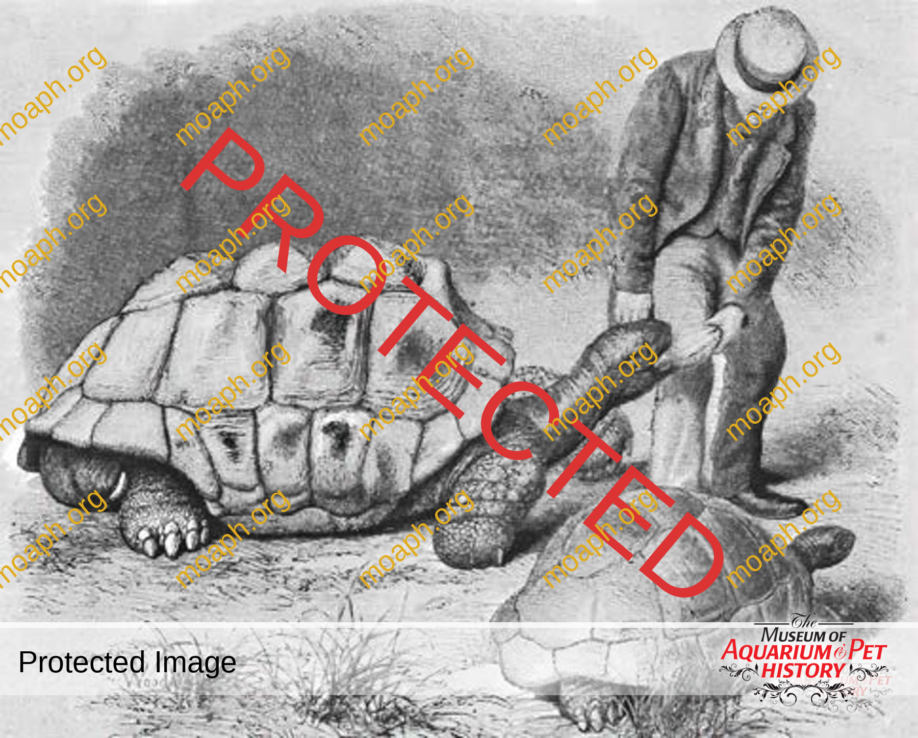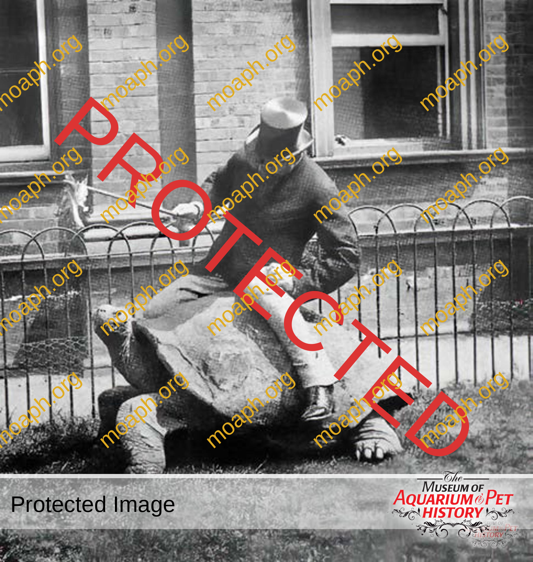 Figure 4. The Honorable Walter (later 2nd Baron) Rothschild riding his giant tortoise Rotumah in front of London Zoo reptile house circa 1898. He was certainly well dressed. Notice the food extended on a stick to entice the animal to move forward. He developed a private zoological museum called Walter Rothschild Zoological Museum in Tring, which opened to the public in 1892. The collection was transferred to the nation in 1937 and is overseen by the Natural History Museum in London. The name was changed in 2007 to Natural History Museum at Tring. Courtesy of John Edwards.