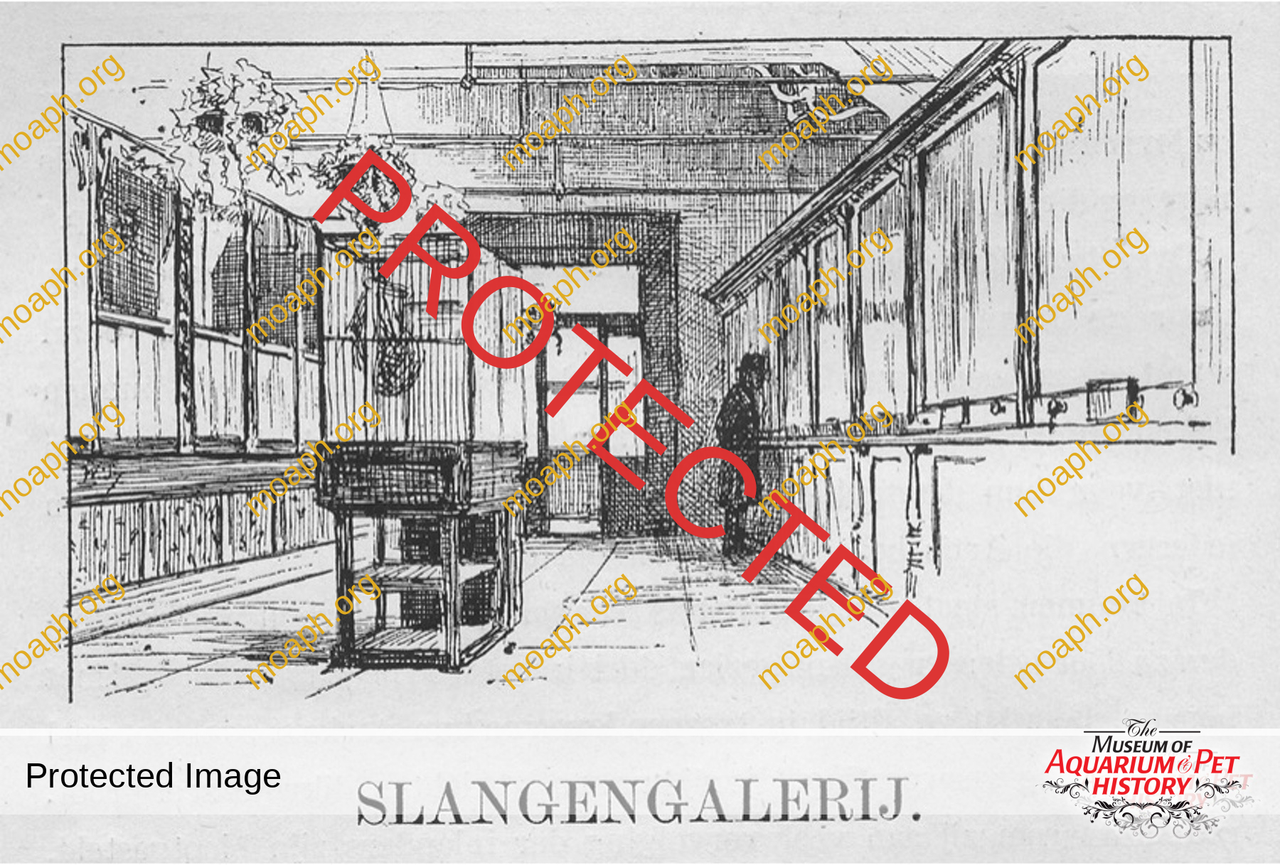 Illustration of snake hall (Schlagen-Zaal) at Natura Artis Magistra in Amsterdam from De Dierentuin van het Koninklijk Zoölogiisch Genootschap te Amsterdam by Hermann Schlegel in 1872.