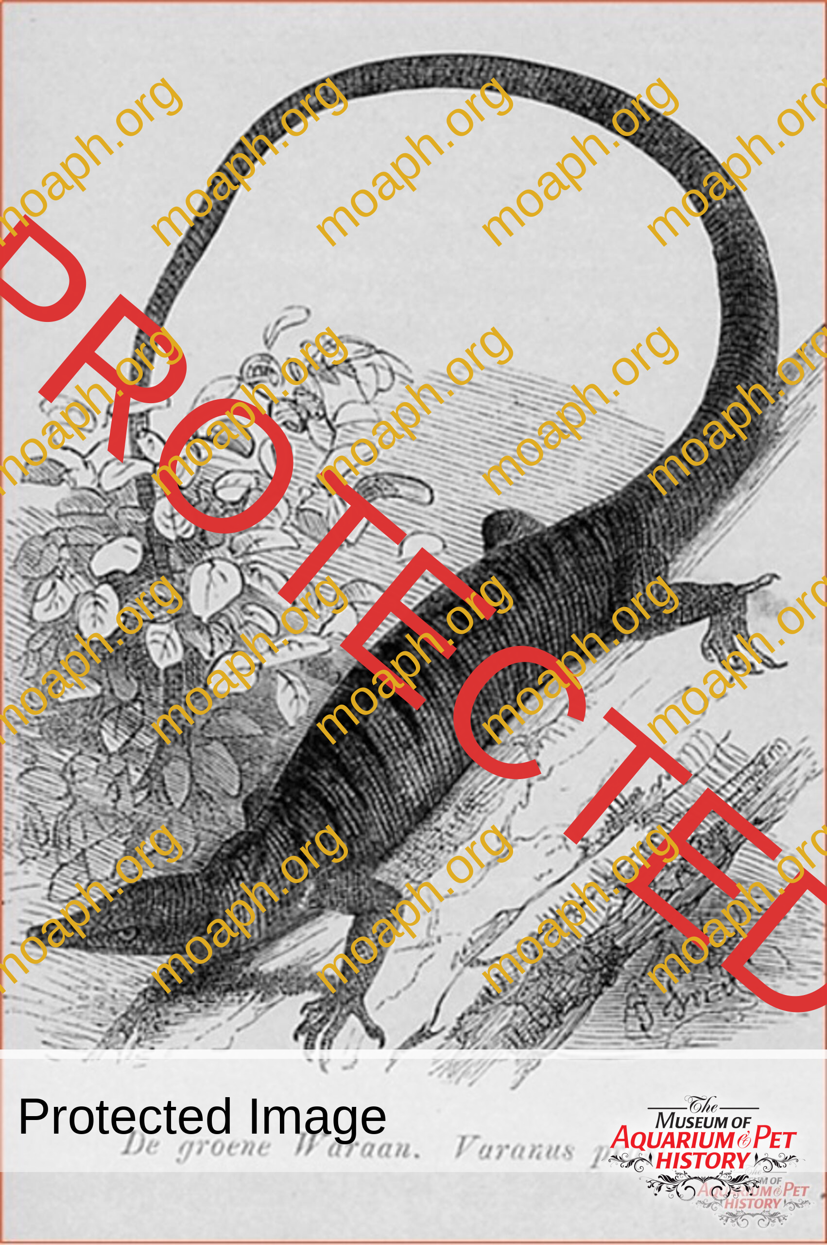 Illustration of green monitor (Varanus prasinus) in Hermann Schlegel’s De Dierentuin van het Koninklijk Zoölogisch Genootschap te Amsterdam in 1872.