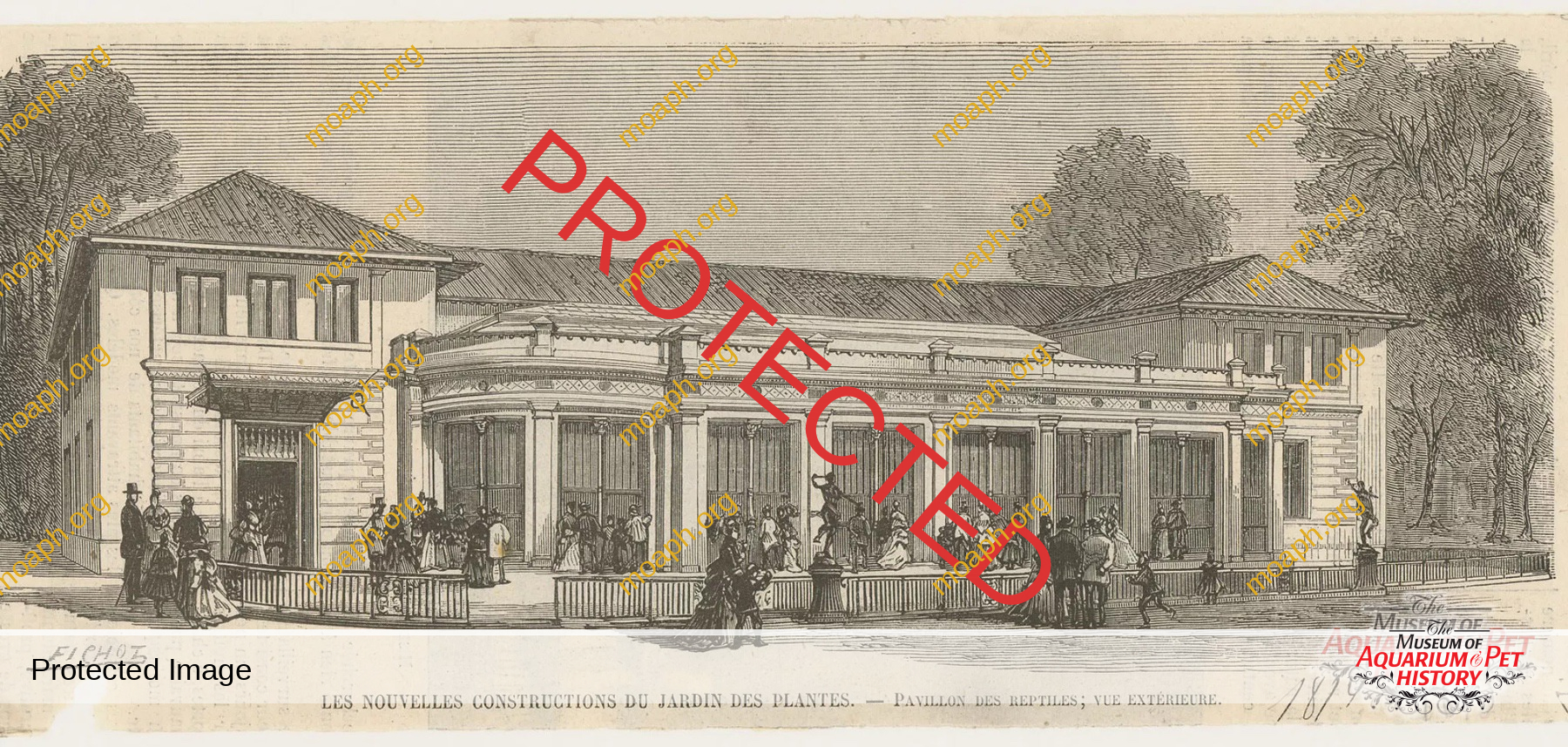 Reptile display at Antwerp Zoo from “Promenade au jardin zoologique d’Anvers par Eugéne Gens” by Eugéne Gens in 1861.