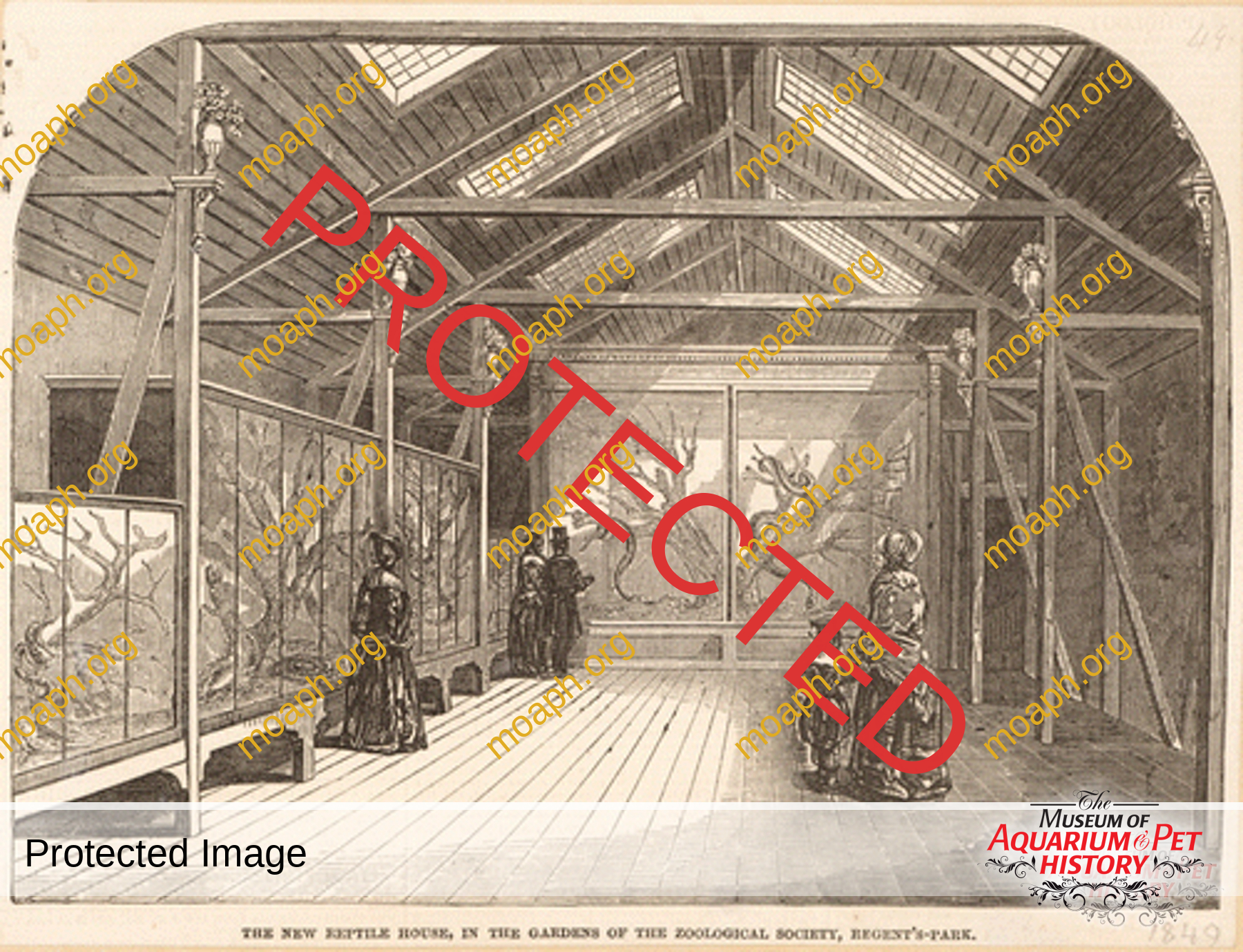 In May 1849, the London Zoo, opened the first zoo reptile building, a modified carnivorous mammal facility. The dens, now serving as reptile enclosures, could only be serviced from the front. These unwieldy glass fronts were cranked up by means of pulleys and chains, a hazardous undertaking at best when venomous snakes and speedy lizards were the inhabitants.