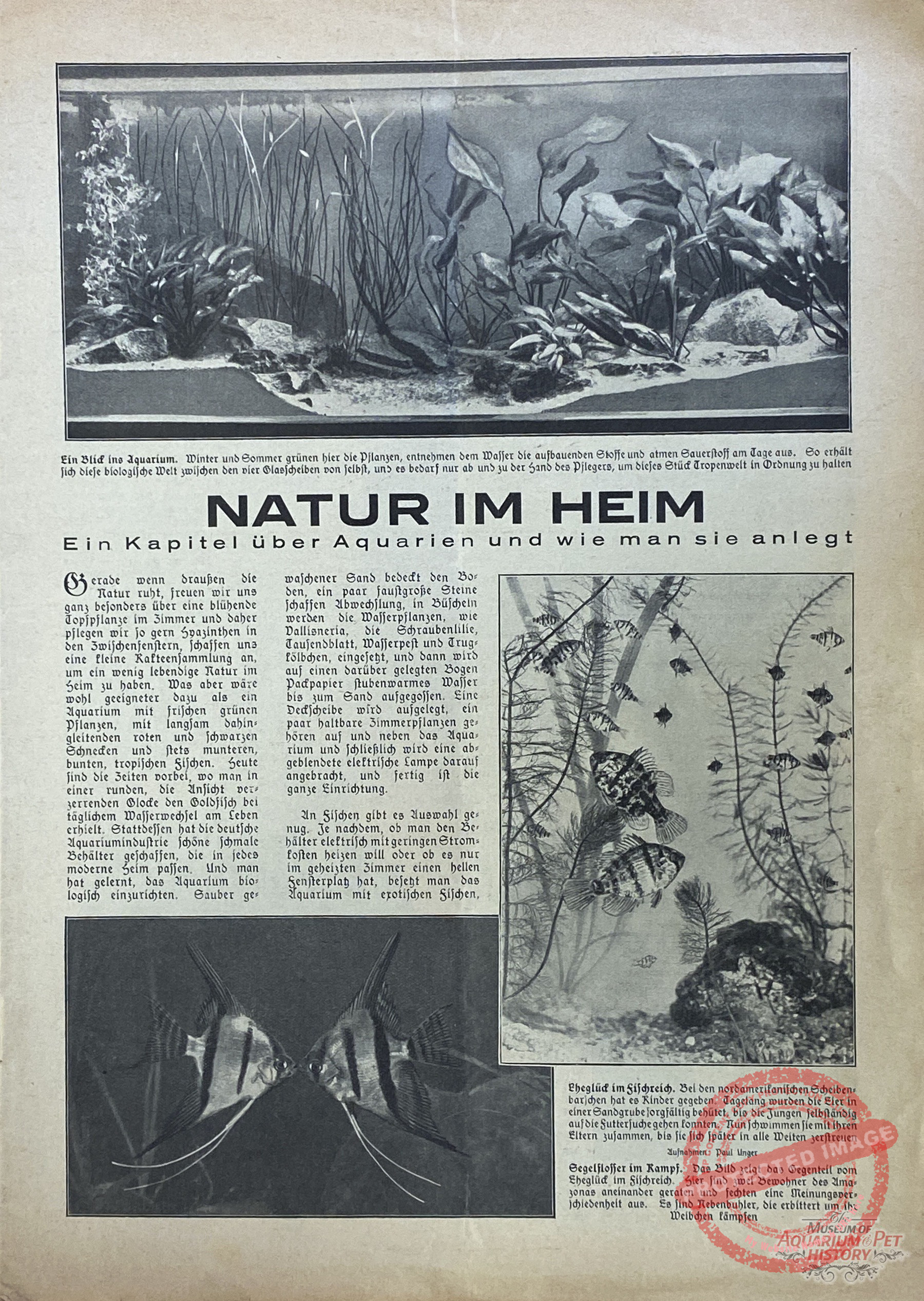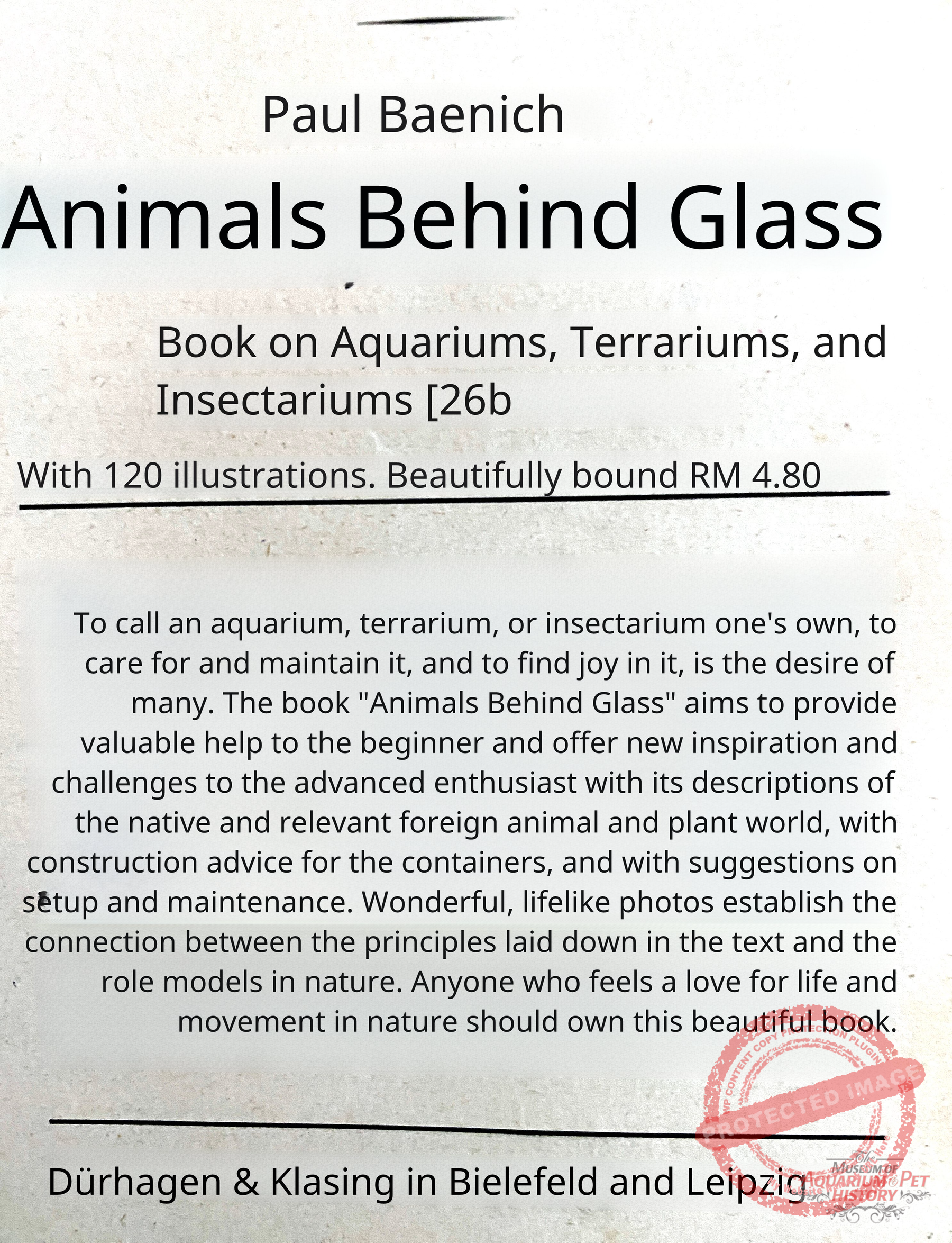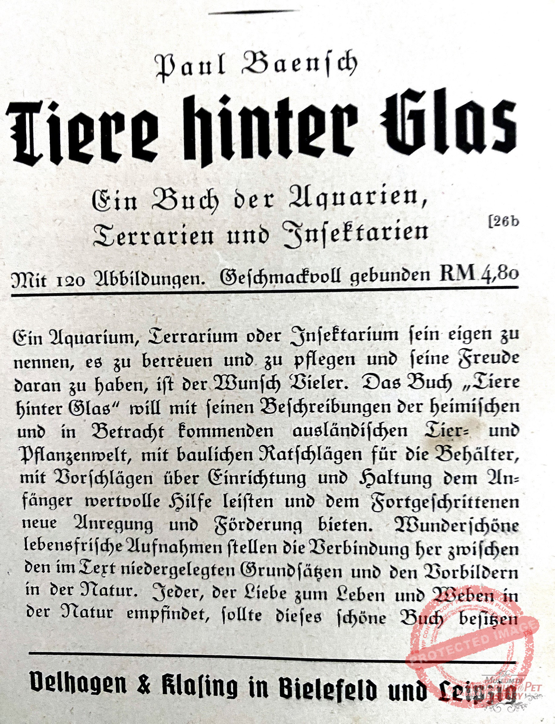 In 1938, the father of the later founder of the Tetra works, Paul Baensch, published his book Tiere hinter Glas (Animals Behind Glass)