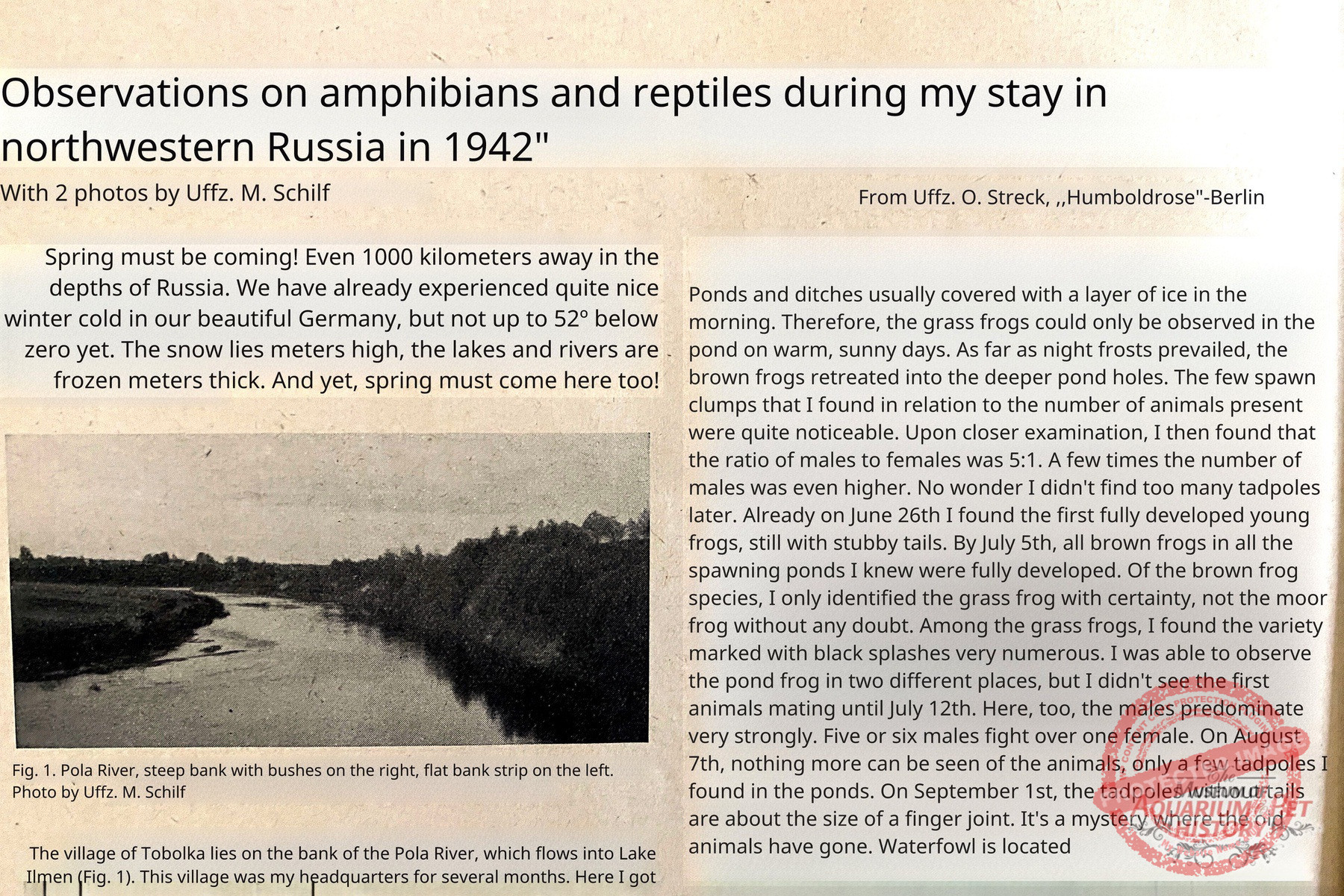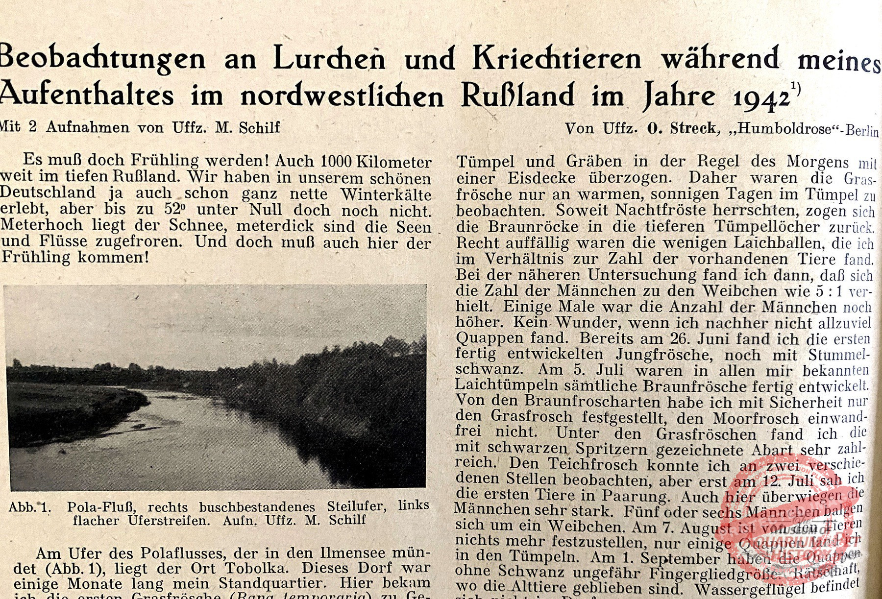 A mid-1942 Wochenschrift article from the front describing amphibians and reptiles in northwestern Russia.