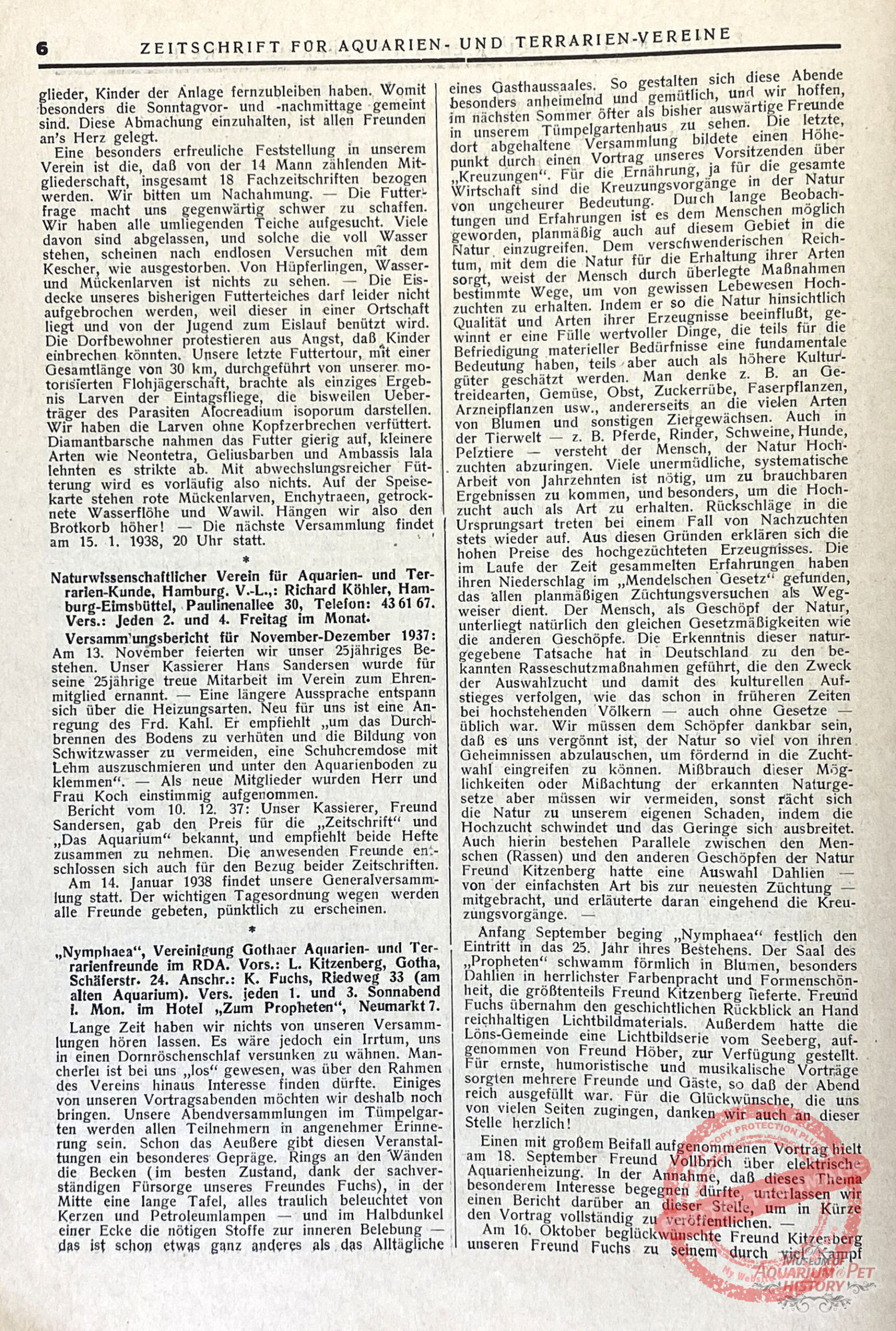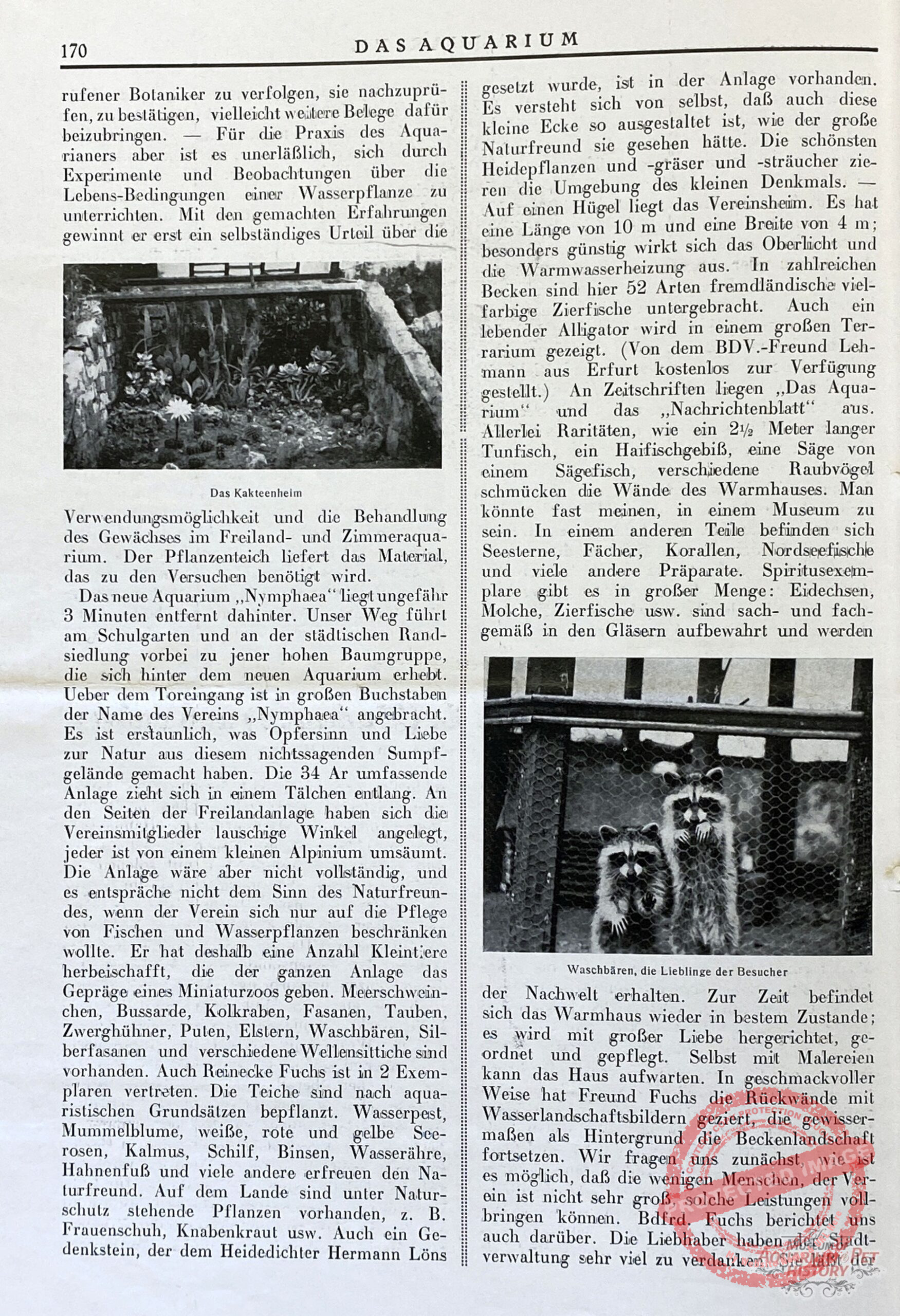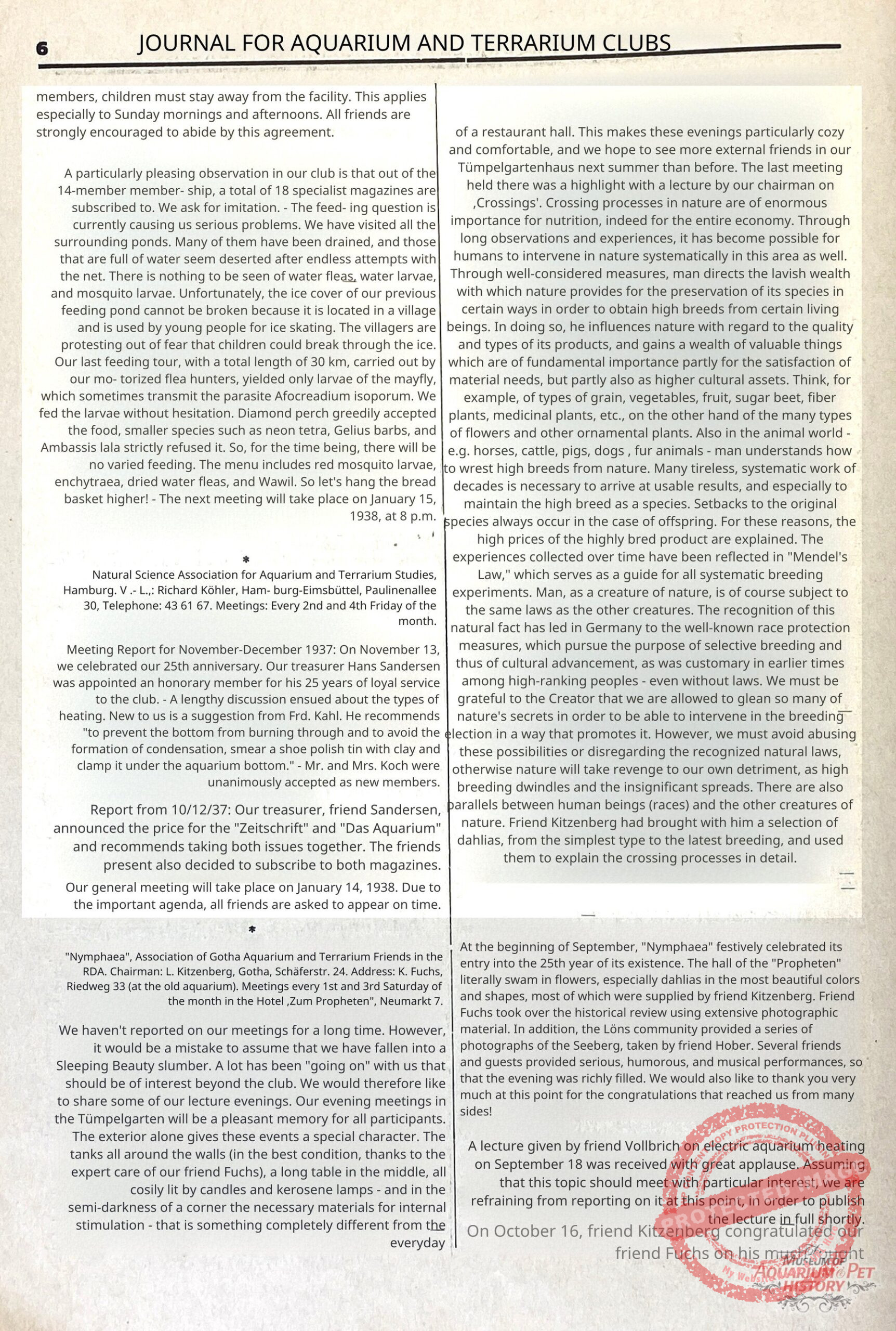 In addition to the jubilee publications, the journal Zeitschrift für Aquarien- und Terrarien-Vereine also reported in 1938 on the broader activities of the Nymphaea club.