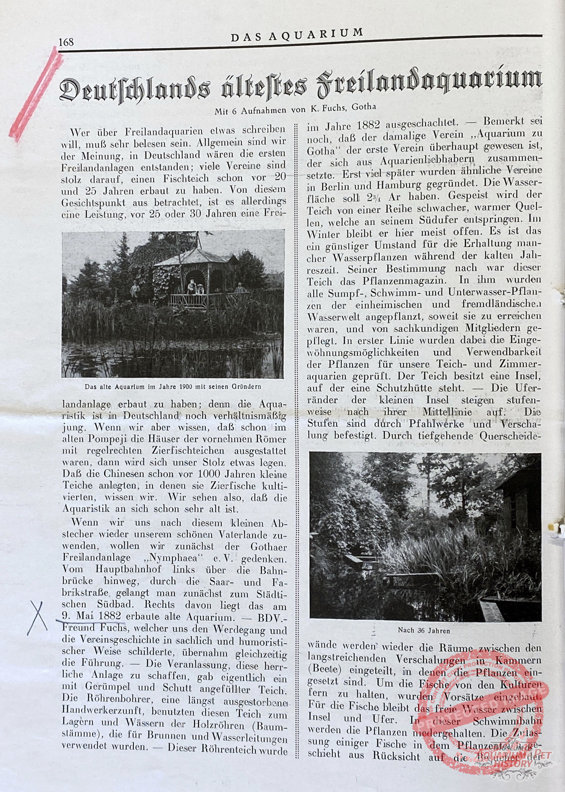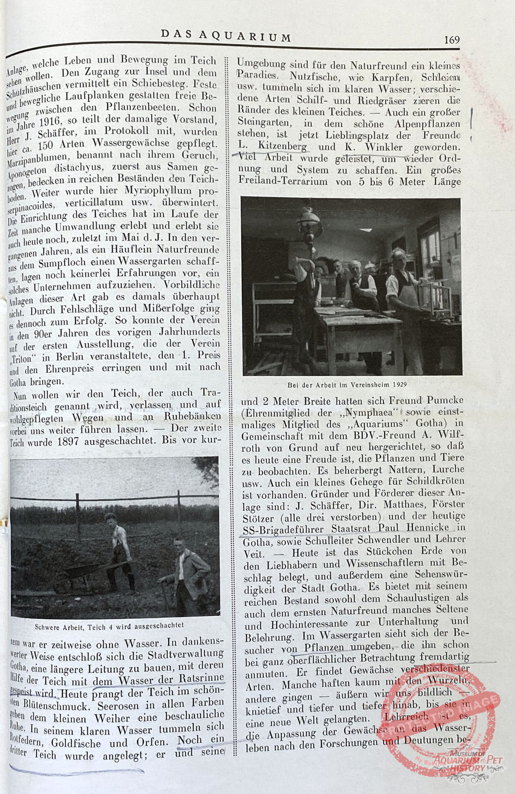 Although I am about to describe the darkest years of German history — and with them the darkest years for the aquarists and terrarists of Germany, and especially of Gotha — I would like to begin with something affirmative, something that connects directly to the previous part of this series. In the first half of the 1930s, the outdoor vivarium truly gathered momentum. Across many German cities, associations established and maintained open-air facilities1, as well as small greenhouse complexes. Most of these installations were open to the public. They brought joy not only to those who operated them, but also satisfied the thirst for knowledge of many interested visitors — particularly young people.