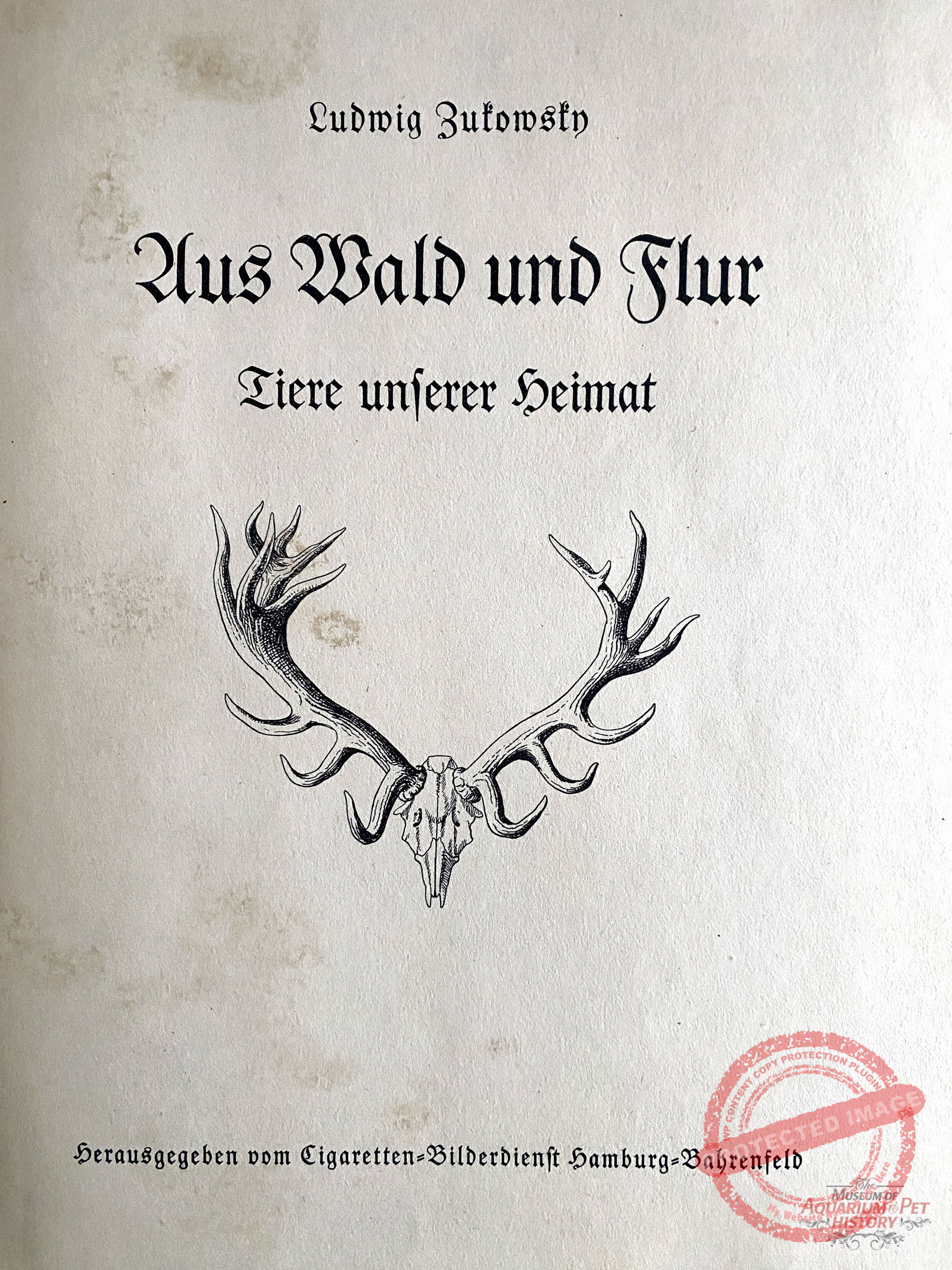 The text of this book was written by the former Berlin Zoo director Ludwig Zukowsky. The text on this page says: “From Forest and Field, Animals of Our Homeland – Published by the Cigaretten-Bilderdienft Hamburg-Bahrenfeld”